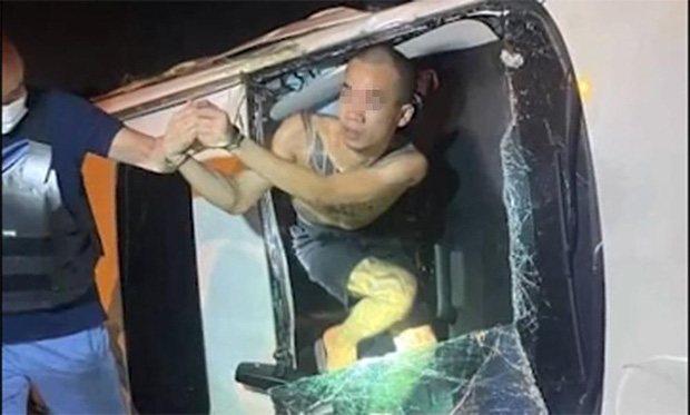 Tuy nhiên, nam tài xế xe Mazda CX5 bỏ chạy trên một quãng đường dài và va chạm với một chiếc xe khác đi phía trước, dẫn đến bị lật ở ven đường.