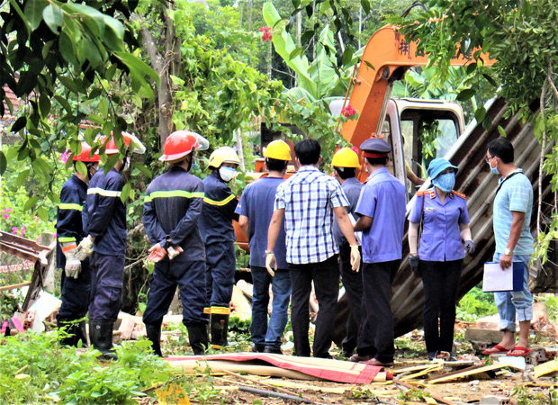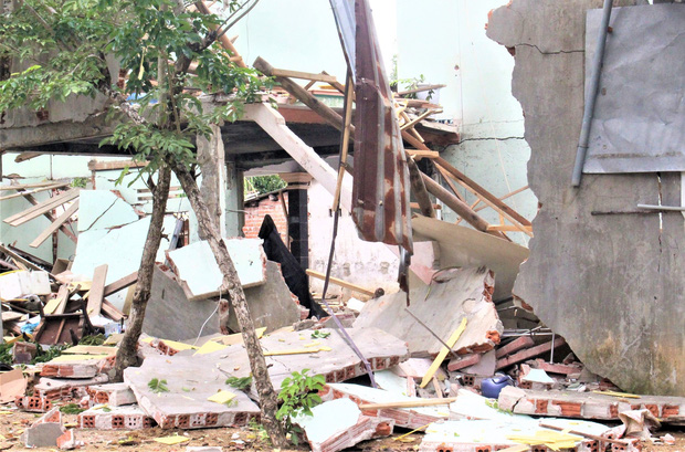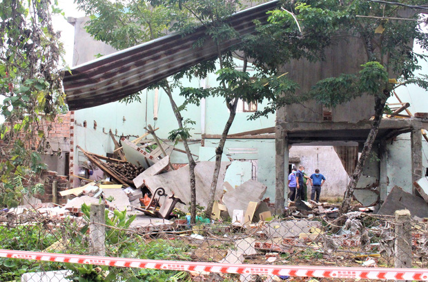Sau khi nghe tiếng nổ vang trời, hàng xóm chạy đến hiện trường thấy toàn bộ căn nhà ông M. chỉ còn là đống đổ nát, nhiều vật dụng trong gia đình như tivi, xe máy, đồ dùng... văng khắp nơi. Từ bên ngoài nhìn vào có thể thấy được vợ chồng ông M. bị đè trong đống đổ nát, thi thể không còn nguyên vẹn.