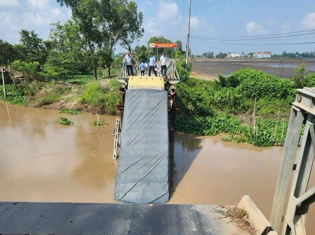 Khi ô tô đến giữa cầu T6 thuộc xã Vĩnh Phước, huyện Tri Tôn (tỉnh An Giang), công trình bất ngờ bị sập nhịp, xe rơi xuống kênh. Phần đầu ô tô tải còn vướng trên nhịp cầu, tài xế mở cửa thoát ra ngoài kịp thời.