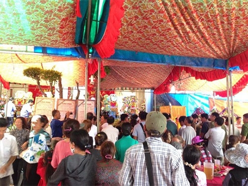Đám tang 6 người bị thảm sát ở Bình Phước, kín người đến thăm viếng. - Ảnh: Tú Mi |