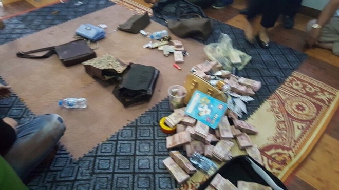 Một số đối tượng bỏ chạy phía sau nhà và tìm cách vứt tiền từ tầng 3 xuống để tẩu tán tang vật nhưng Công an TP. Vinh đã bố trí lực lượng quay camera và thu giữ lại hết số tiền, không để thất thoát.
