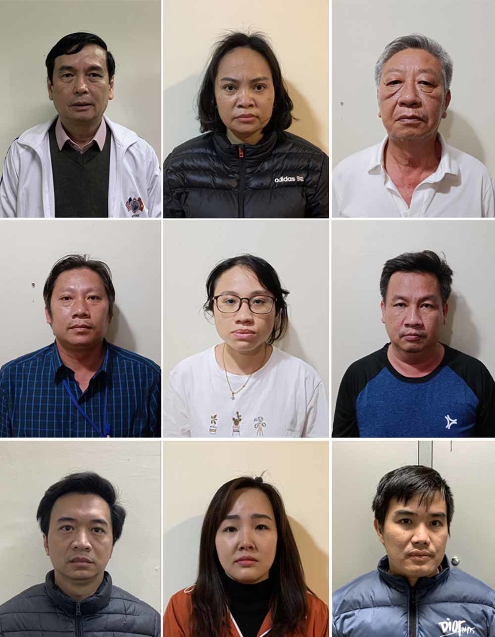 Các bị can bị khởi tố để điều tra về hành vi Vi phạm quy định đấu thầu gây hậu quả nghiêm trọng gồm: Nguyễn Văn Định, Giám đốc CDC Nghệ An; Nguyễn Thị Hồng Thắm, Kế toán trưởng CDC Nghệ An; Nguyễn Thành Danh, Giám đốc CDC Bình Dương; Trần Thanh Phong, Phó Phòng Tài chính Kế toán CDC Bình Dương; Lê Thị Hồng Xuyên, nguyên Phụ trách Phòng Thí nghiệm CDC Bình Dương; Tiêu Quốc Cường, Kế toán trưởng, Phó phòng tài chính Sở Y tế Bình Dương; Nguyễn Trường Giang, Giám đốc VNDAT; Nguyễn Thị Thúy, nhân viên kinh doanh Công ty CNDAT; Lê Trung Nguyên, Giám đốc Vùng Công ty Việt Á.