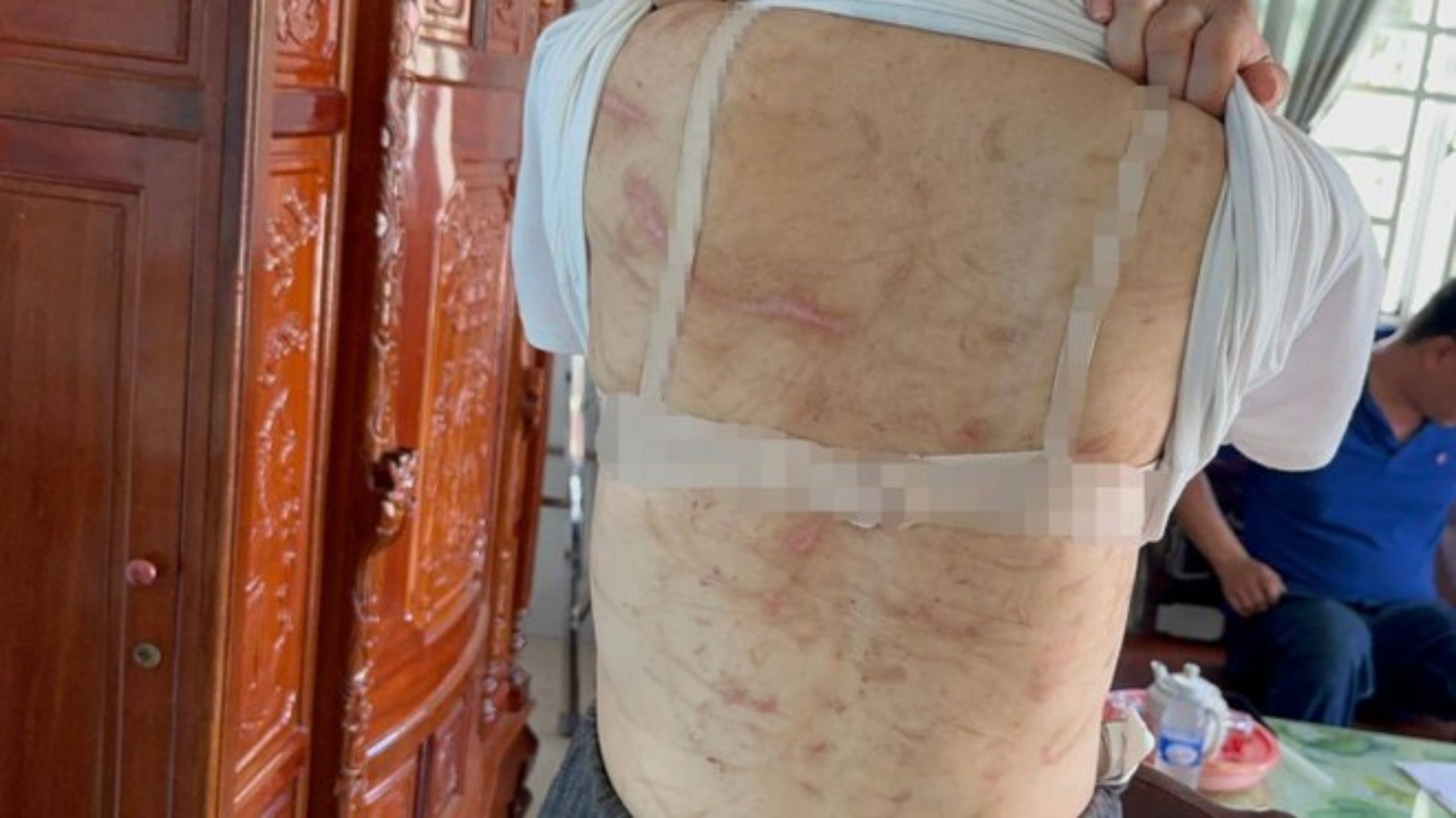 Luân dùng lược, thắt lưng da… vụt vào người chị Giao, gây nên các vết thương trên khắp cơ thể.