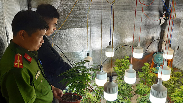Lực lượng Công an thu giữ 2 gói nilon bên trong chứa tinh thể màu trắng nghi ma túy tổng hợp. Qua kiểm tra tại hiện trường, lực lượng Công an còn phát hiện, thu giữ 30 cây cần sa được trồng trái phép trong nhà với hệ thống đèn chiếu sáng hiện đại.