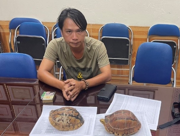 5h ngày 26/6, tại phường Ngọc Khánh, quận Ba Đình, Hà Nội, Tổ công tác Đội Cảnh sát ĐTTP về Kinh tế và chức vụ Công an quận Ba Đình đã phát hiện, bắt quả tang đối tượng Phạm Nghĩa Hiệp (SN 1987; trú tại Quế Trung, Nông Sơn, Quảng Nam) đang mang 2 cá thể rùa hộp trán vàng miền Trung đi giao cho khách.