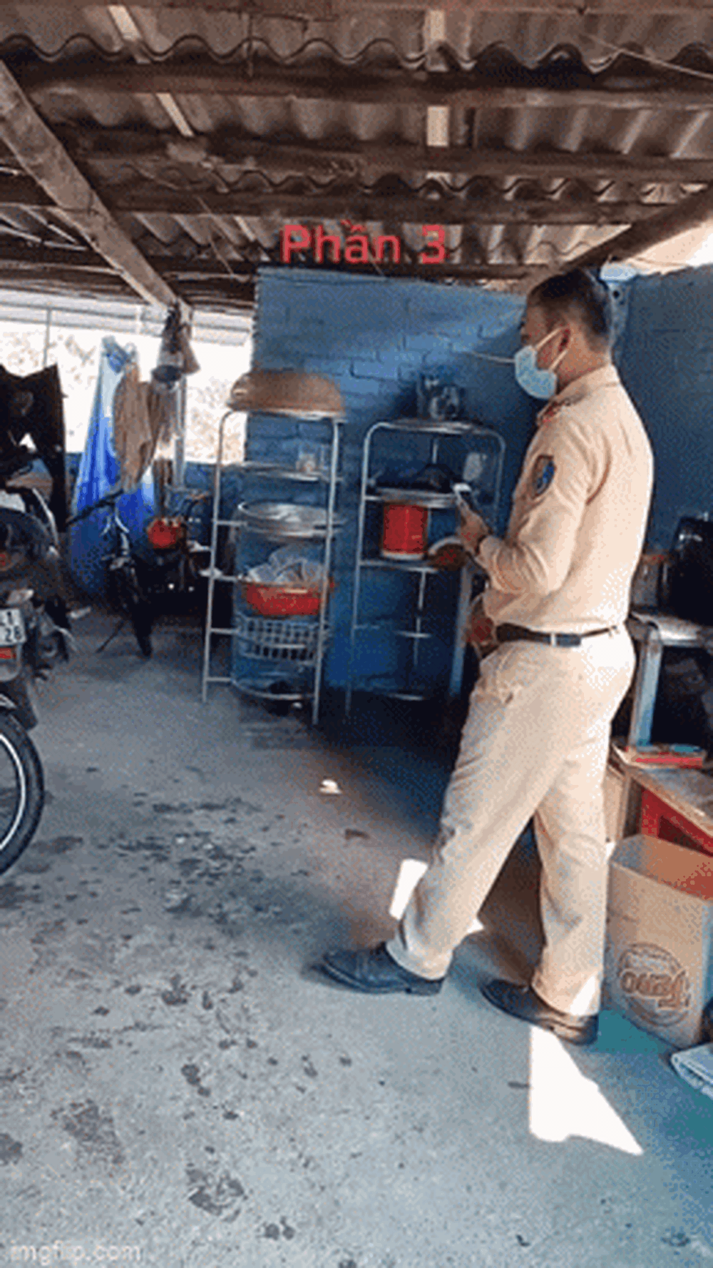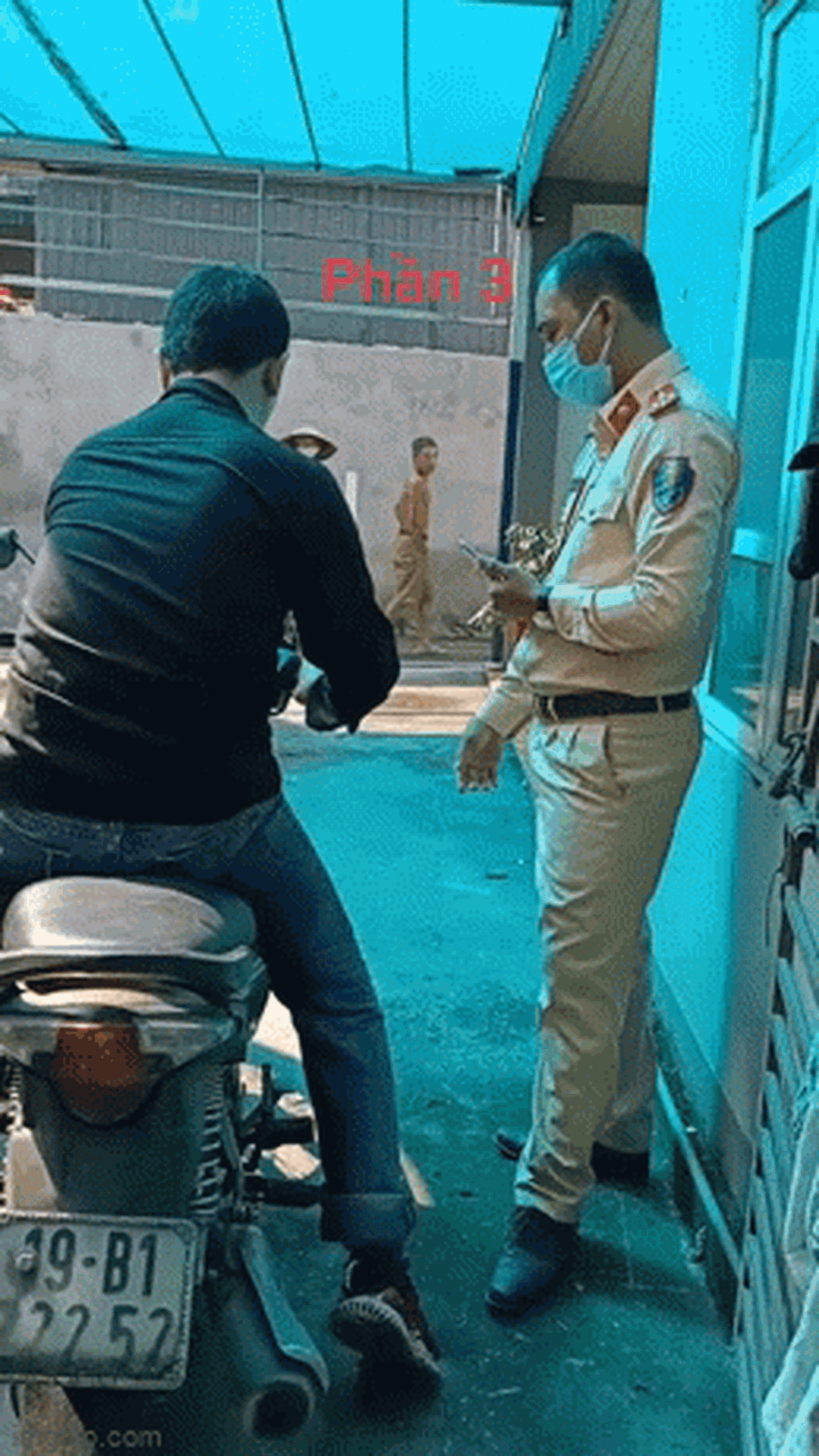 Vị chủ nhà đứng bên cạnh cũng khuyên nhủ cùng chiến sĩ cảnh sát giao thông, nói rằng chị đã có camera quay lại hành vi của anh: "Em là chủ nhà, thật sự em đang ngồi ở nhà mà anh xộc vào nhà em như thế này là anh sai hoàn toàn rồi. Nếu anh tham gia giao thông sai thì phải chấp nhận".