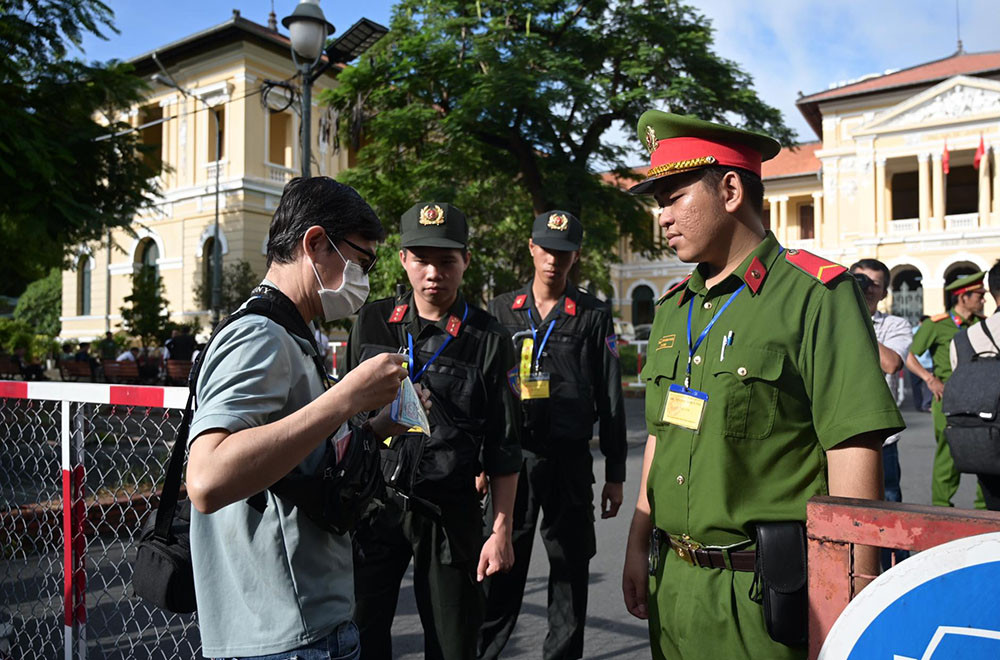 Phiên tòa được bảo vệ nghiêm ngặt, chỉ những người có giấy triệu tập mới được vào khu vực xử án. Lực lượng cảnh sát, dân phòng được bố trí xung quanh tòa để đảm bảo an ninh.