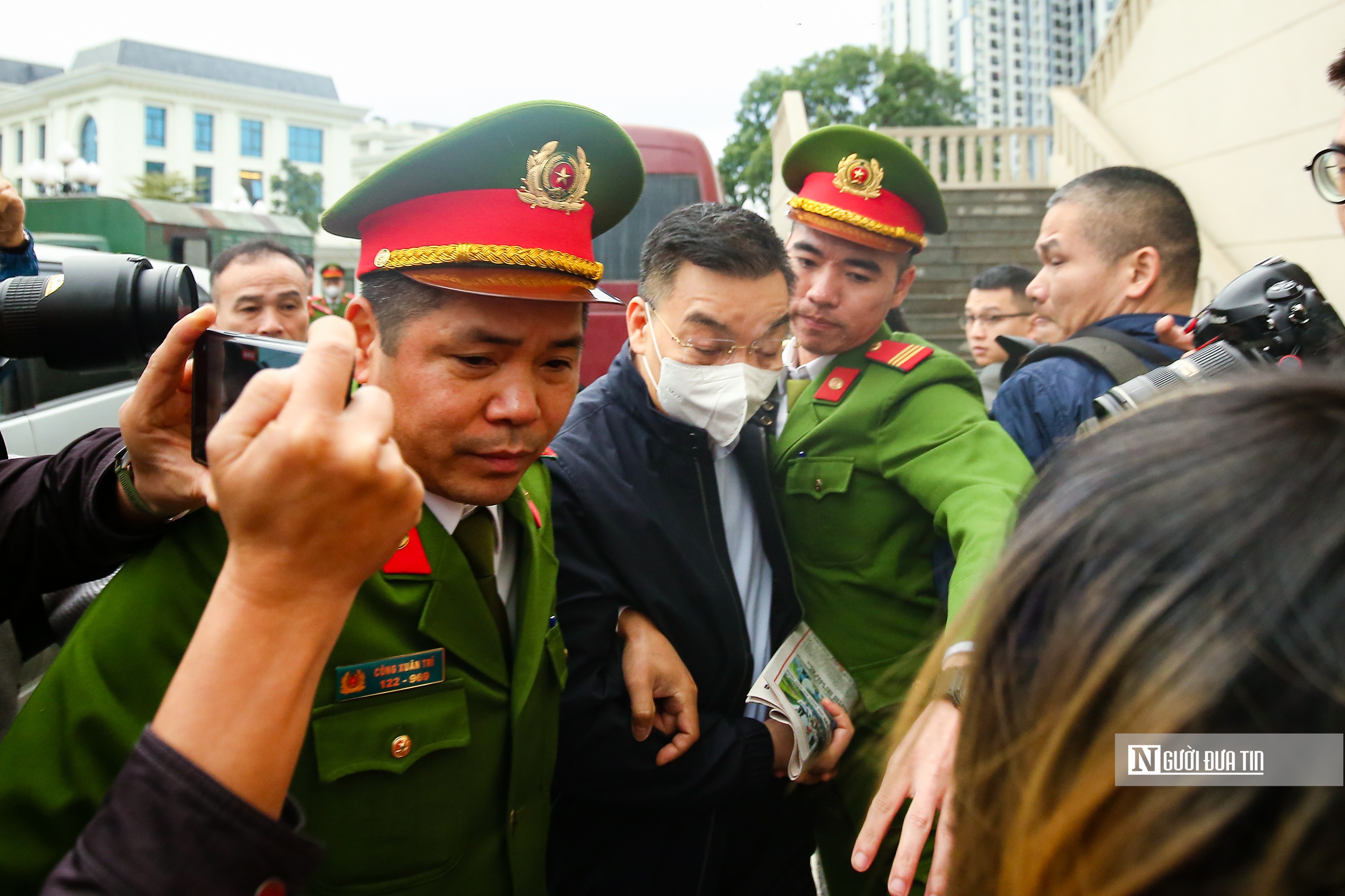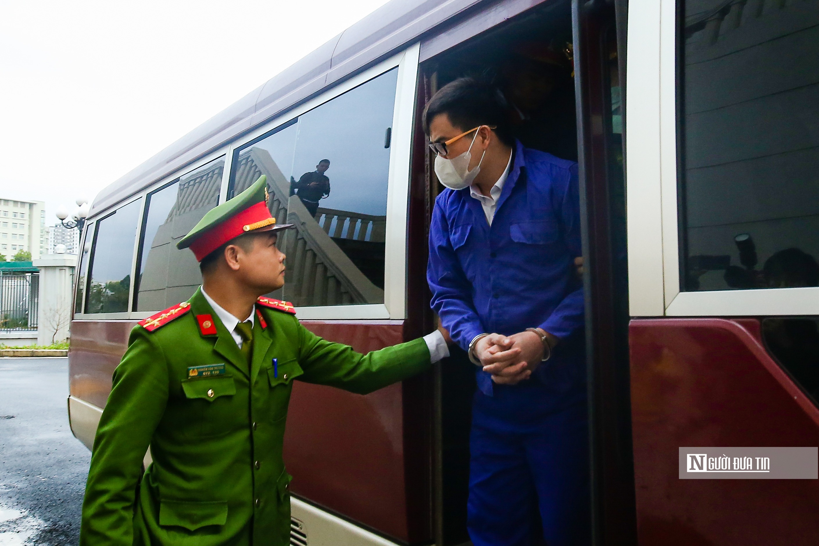 Lúc 8h cùng ngày, xe chở các bị cáo có mặt tại TAND thành phố Hà Nội.