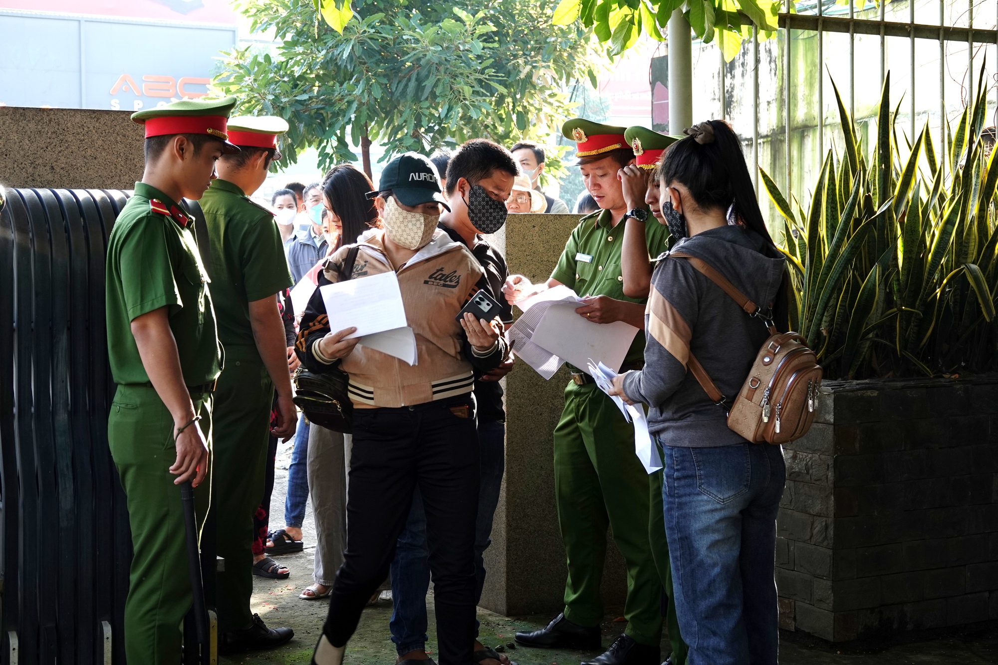 Trước khu vực cổng Tòa án, lực lượng công an kiểm soát chặt chẽ, chỉ những người nào có giấy triệu tập mới được tham dự phiên tòa.