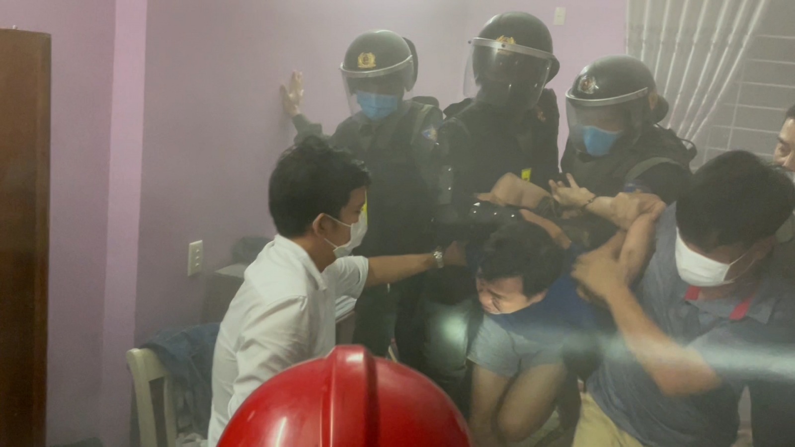 Do căn phòng của Hải nằm trên lầu 1, cửa phòng bị khóa nên việc tiếp cận, phá cửa và khống chế đưa người ra ngoài rất khó khăn. Nhưng bằng các biện pháp nghiệp vụ, lực lượng cảnh sát đã áp sát căn phòng của Hải đang cố thủ bên trong. Các bình chữa cháy cầm tay và vòi nước cứu hỏa được lực lượng làm nhiệm vụ chuẩn bị sẵn sàng.