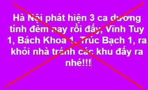 Công an Hà Nội khuyến cáo, trước diễn biến phức tạp của dịch bệnh Covid-19, việc chia sẻ các thông tin sai sự thật như trên là thiếu ý thức trách nhiệm công dân, ảnh hưởng đến công tác phòng, chống dịch.