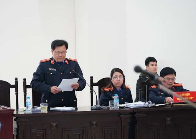 Mở đầu, đại diện Viện KSND Hà Nội nêu quan điểm luận tội đối với Lê Xuân Giang – Chủ tịch Liên Kết Việt và các đồng phạm. Trong đó, kiểm sát viên đề nghị tòa phạt bị cáo Giang án tù chung thân về tội “Lừa đảo chiếm đoạt tài sản”.