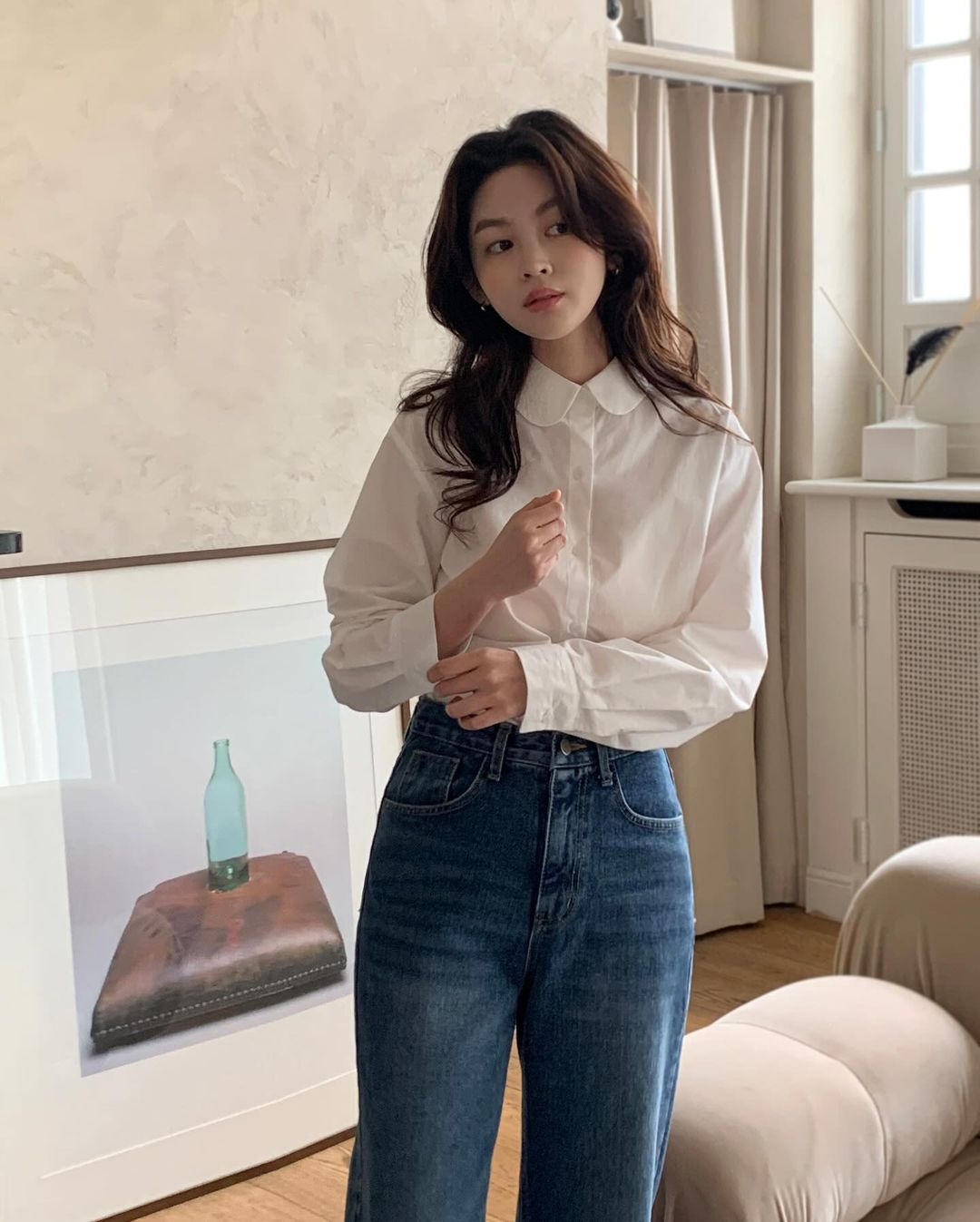 Sự kết hợp giữa sơ mi trắng và quần jeans hay quần ống suông là một lựa chọn an toàn và phổ biến. Sự đối lập giữa vẻ ngoài chỉn chu của sơ mi và sự thoải mái, năng động của quần jeans/quần ống suông tạo nên một set đồ vừa lịch sự vừa thoải mái. Bạn có thể chọn các kiểu quần có màu sắc trung tính như xanh, đen hoặc trắng để tăng tính tương phản.