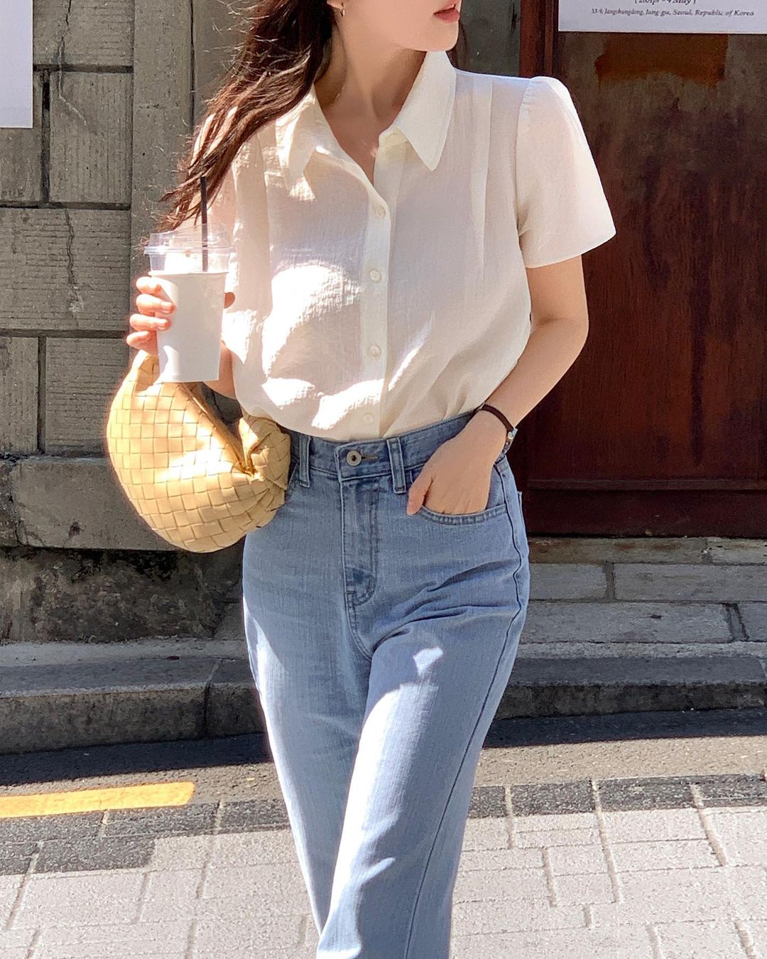 1. Sơ mi trắng + Quần jeans, quần ống suông