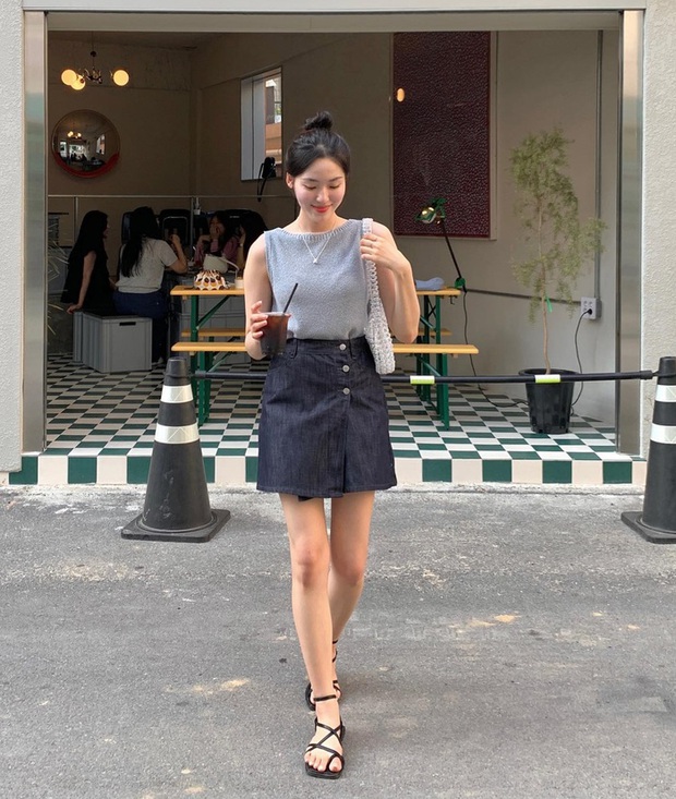 Áo gile len có sự phóng khoáng nhưng cũng toát lên nét nữ tính, trang nhã. Các nàng có thể kết hợp mẫu áo này với chân váy denim dáng ngắn để tạo nên tổng thể trang phục năng động, trẻ trung. Chị em nên sơ vin gọn gàng và đi sandal "nịnh" chân. Cách phối đồ này sẽ giúp tôn dáng tối ưu.