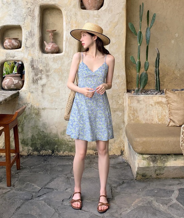 Vào những ngày nắng ấm áp, chị em hãy áp dụng công thức váy hoa nhí kết hợp với sandal và túi cói. Công thức này ghi điểm ở nét ngọt ngào, phóng khoáng và lên hình "sống ảo" rất hút mắt.