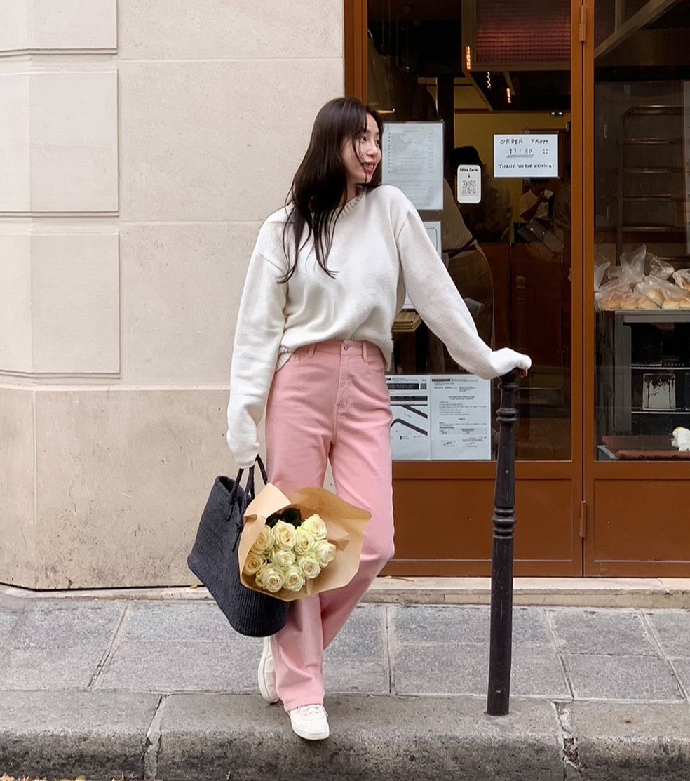 Quần màu hồng pastel sẽ mang đến làn gió mới cho phong cách của chị em. Kiểu quần này kết hợp rất ăn ý với áo trắng, tạo nên bộ trang phục ngọt ngào, tươi mới mà vẫn trang nhã. Đôi giày sneaker trắng chính là mảnh ghép hoàn hảo của set đồ trẻ trung, năng động.