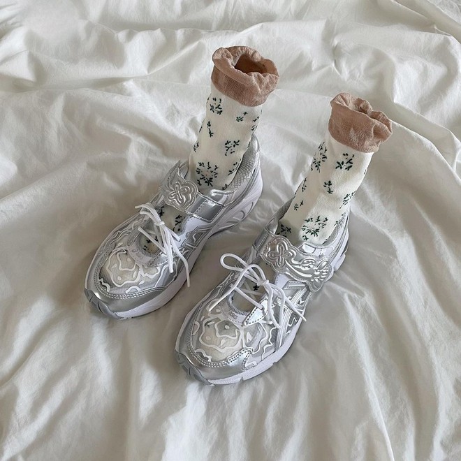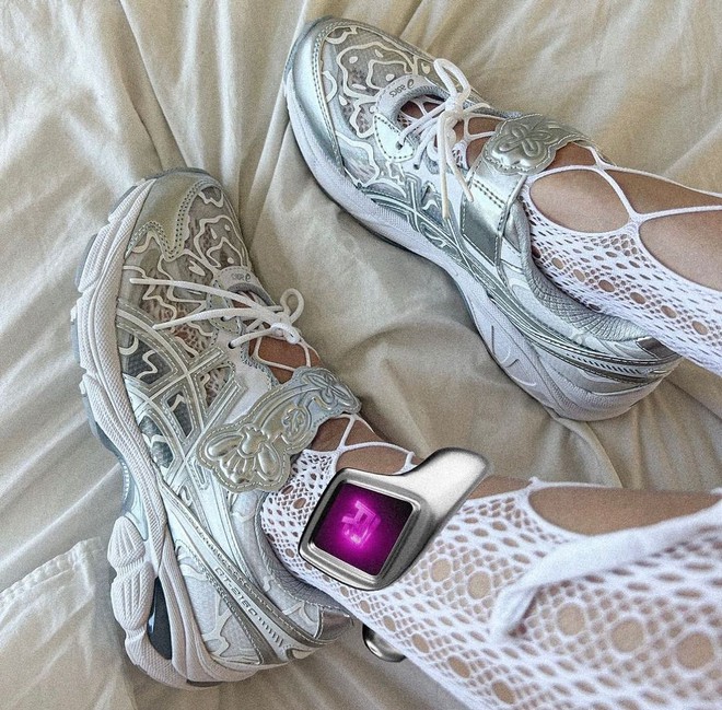Được mệnh danh là "đôi giày xinh nhất thế giới năm 2023" và được đích thân IT Girl Jennie lăng xe nhiều lần, đây cũng là ứng viên sneaker bạc mà bạn không nên ngó lơ. "Em" này vừa có phom dáng đậm chất thể thao khoẻ khoắn của Asics vừa thể thiện của được sự mềm mại, hay ho qua phần hoạ tiết mang đậm dấu ấn Cecilie Bahnsen. Nó là mảnh ghép hoàn hảo với các mẫu tất đính nơ, tất ren hay tất cao cổ nói chung, giúp các cô gái hoàn thiện set đồ. Mặt khác, các chàng trai cũng có thể diện mẫu sneaker này với đồ trơn. Vì độ hot không tưởng nên hiện nhiều shop đang bán đôi này với giá trên dưới 11000K dù giá retail của nó chỉ gần 4500K.