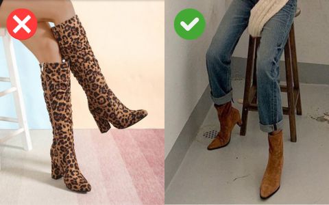 Những chiếc boots cao cổ có họa tiết da động vật không hề giúp bạn trông sang xịn hơn mà còn khiến vẻ ngoài của chị em trông lòe loẹt, sến sẩm. Sự xuất hiện của boots họa tiết da động vật khiến cả set trang phục đang thanh lịch bỗng trở nên hầm hố và thiếu tinh tế. Chưa kể, item này đã hết mốt từ lâu và không còn được ưu ái như trước.