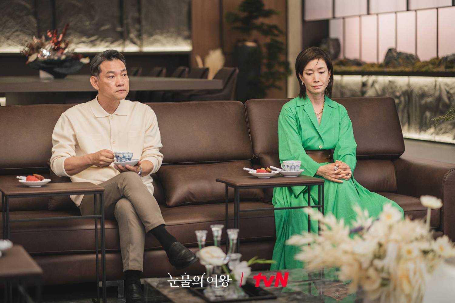 Chỉ nói riêng đến gia đình tài phiệt của cô, đã có 3 nhân vật sở hữu phong cách rất sang trọng, đúng chất thượng lưu. Những nhân vật này đều ở độ tuổi trung niên và họ thường diện các bộ trang phục thanh lịch, quý phái nhưng vẫn có sự đa dạng. Các quý bà U65 trong bộ phim "Queen of Tears" đã chứng minh rằng ở bất cứ độ tuổi nào, phụ nữ đều có thể tỏa sáng với thời trang sành điệu, sang xịn mịn.