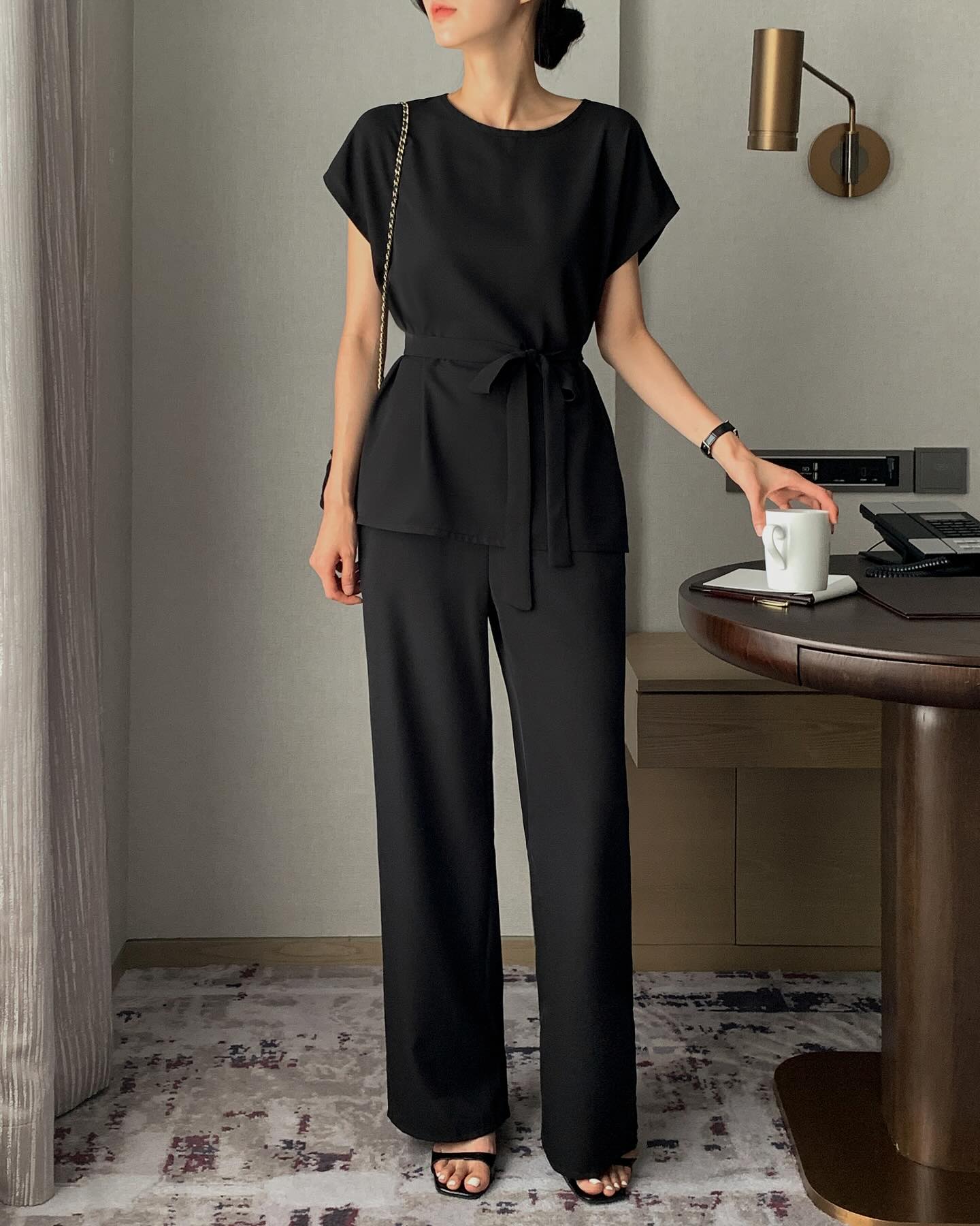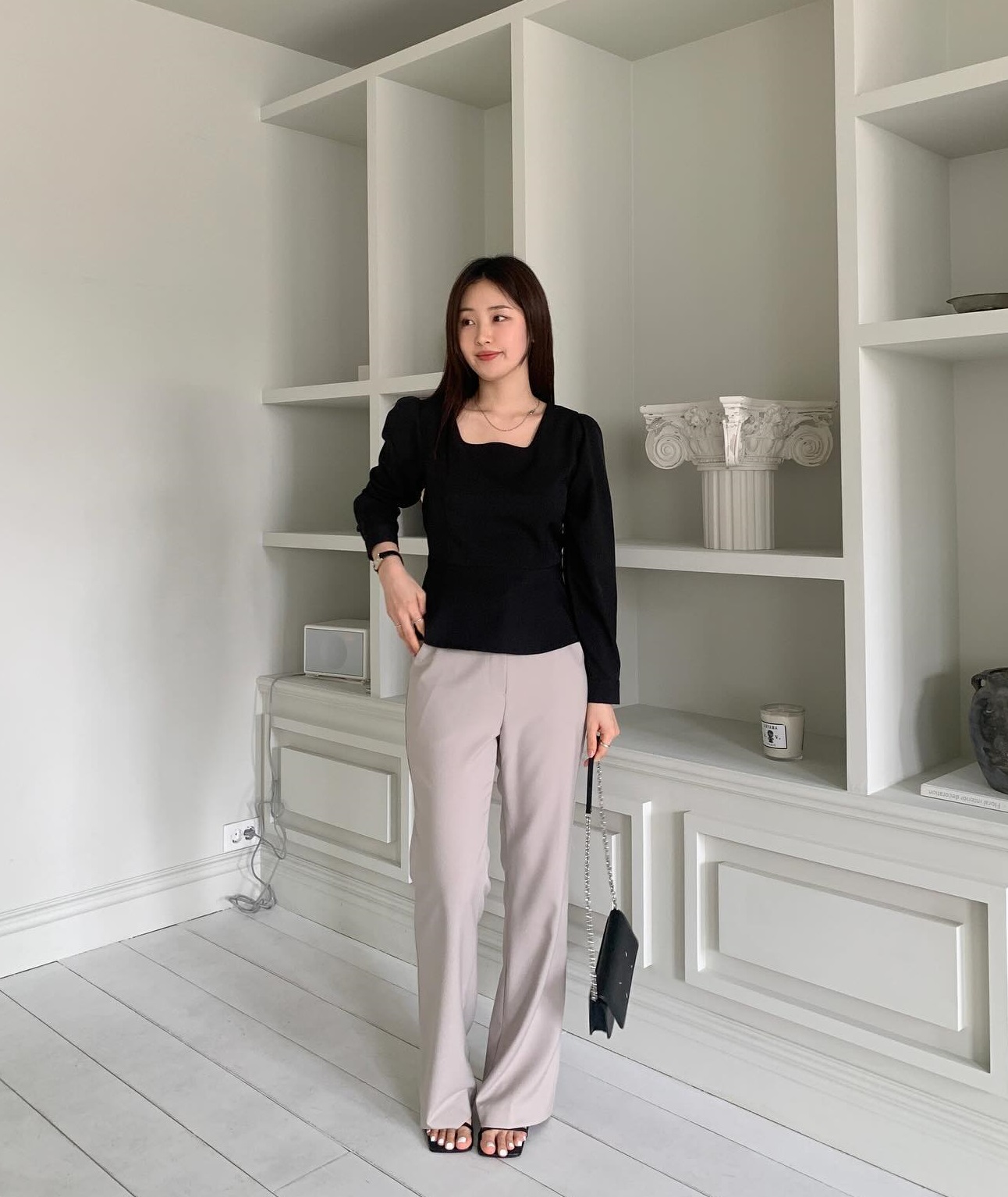 Bên cạnh áo lửng, chị em còn có thể tôn dáng tối ưu bằng cách kết hợp quần ống rộng với áo nhấn eo. Mẫu áo này sẽ tạo cảm giác vóc dáng thon thả và cao ráo hơn. Áo sơ mi/blouse nhấn eo chính là lựa chọn lý tưởng để diện đến công sở.