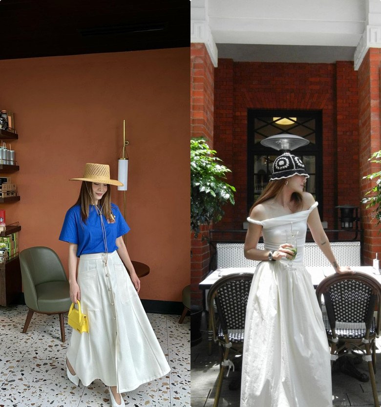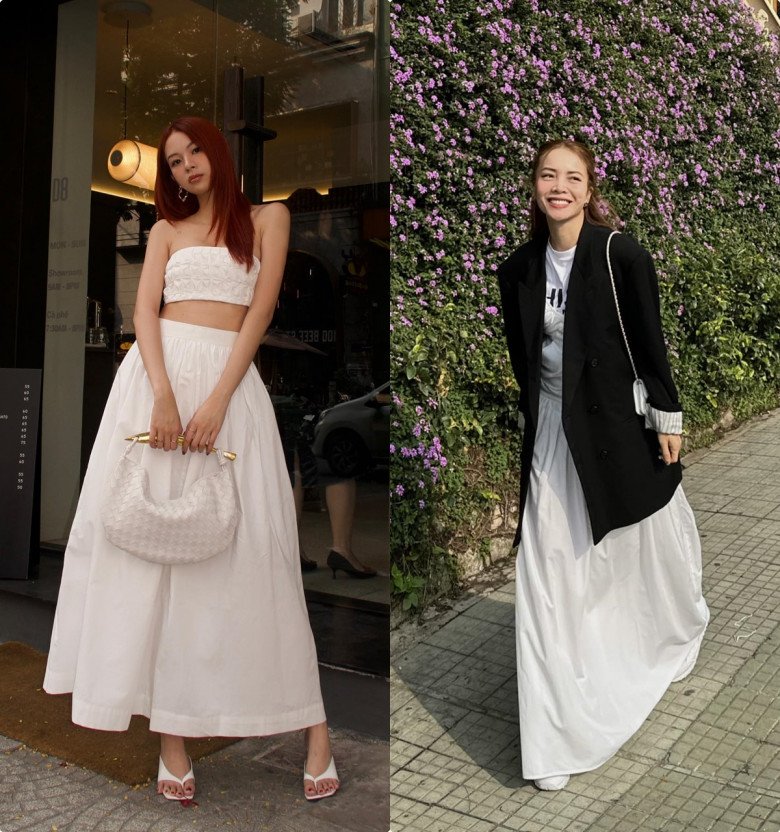 Thay vì sắm váy maxi chỉ mặc được mỗi dịp đi biển thì có lẽ chị em nên suy nghĩ sang chân váy maxi. Thiết kế mặc xinh hơn cả chân váy midi vì khả năng giấu dáng. Món đồ mix cùng với những thiết kế áo phông, sơ mi hay blazer đời thường cũng cho cảm giác bản thân là công chúa nhưng không quá "bánh bèo".