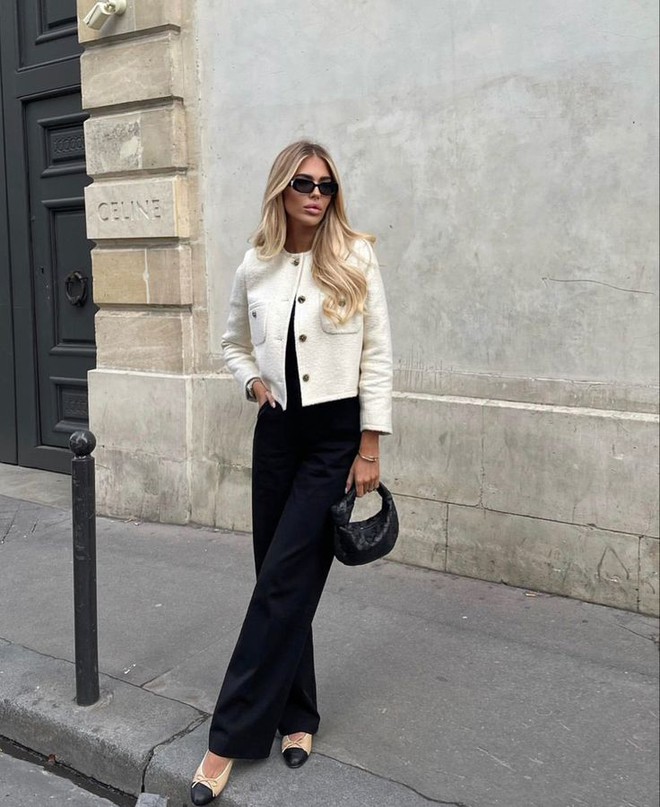 Nhắc đến mẫu áo khoác giúp thăng hạng phong cách thì chẳng thể nào bỏ qua áo vải tweed. Kiểu áo này có thiết kế độc đáo với phần cổ áo tròn và chất liệu dạ dày dặn. Chúng không chỉ phù hợp với những cô nàng chuộng phong cách nữ tính, mà còn có thể giúp bạn toát lên vẻ cá tính, thời thượng.