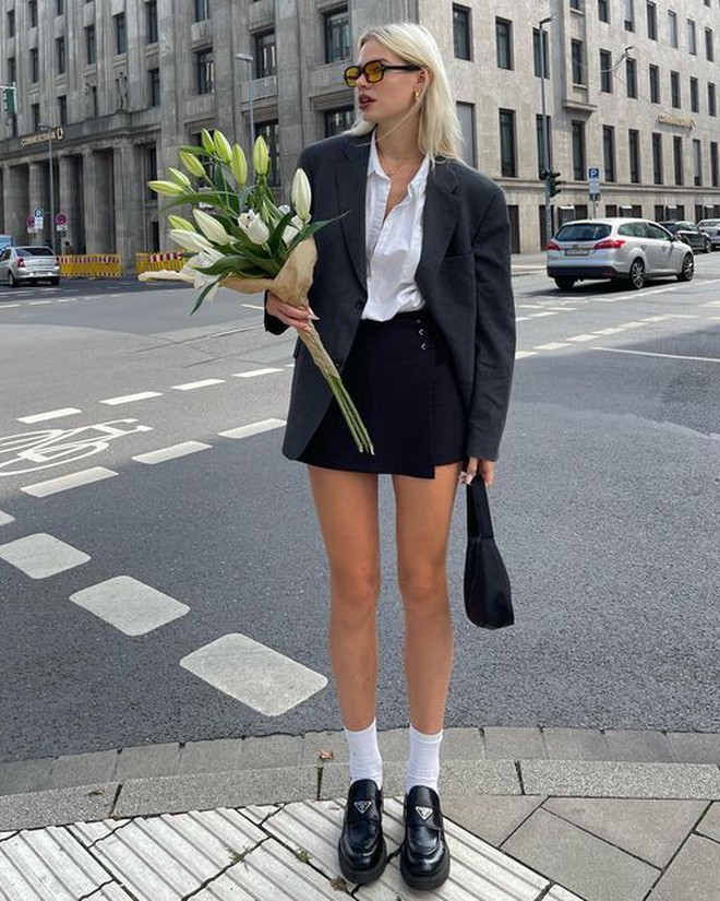 Trong trường hợp nhiệt độ giảm mạnh, nàng có thể phối thêm một chiếc áo len cao cổ bên trong để tạo điểm nhấn mà không làm mất đi vẻ sang xịn vốn có của áo vải tweed.