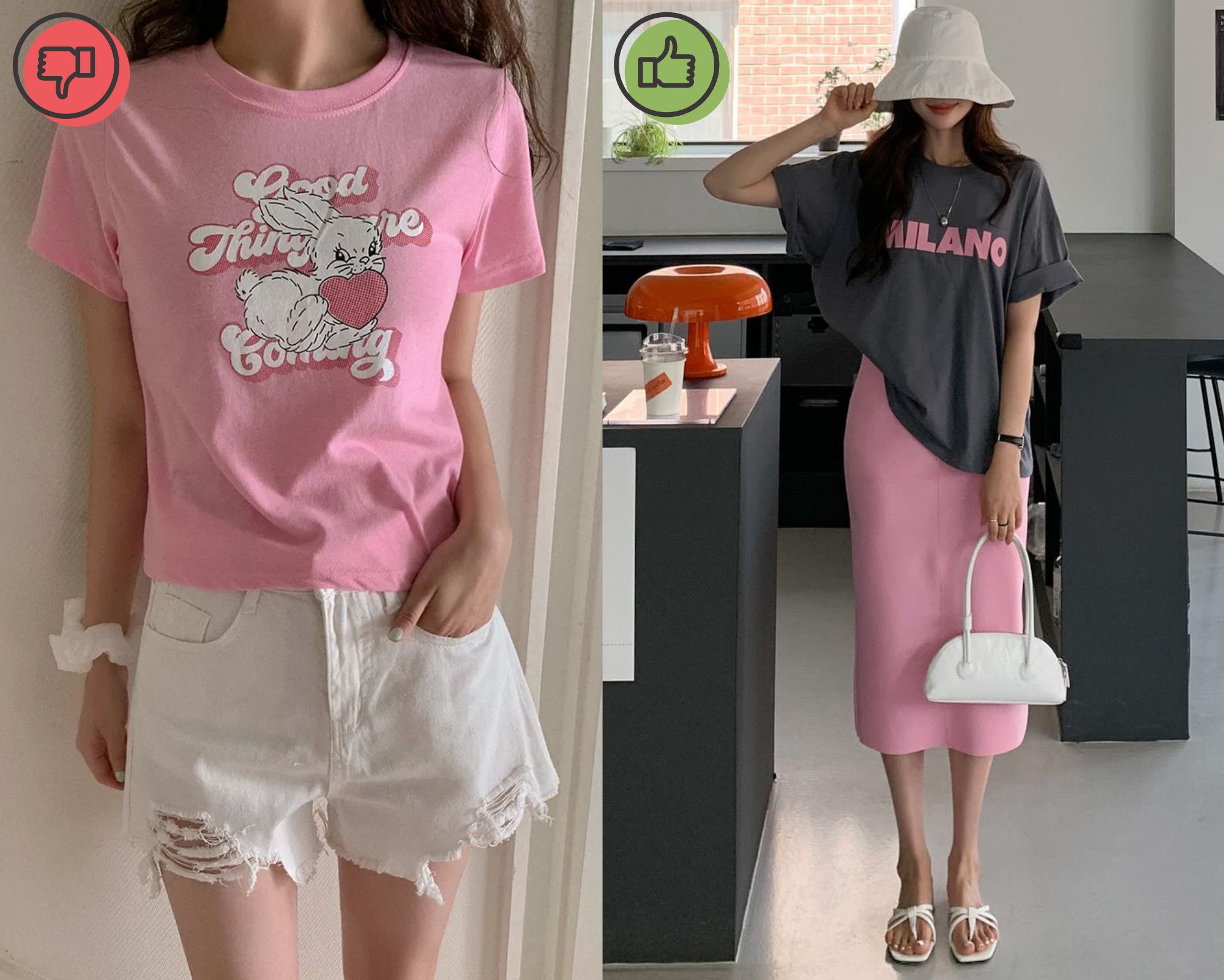 Áo phông họa tiết hoạt hình trông khá nổi bật và dễ thương nhưng lại "lệch pha" so với phụ nữ ở độ tuổi 40. Thậm chí, kiểu áo này còn có thể khiến vẻ ngoài trở nên kém sang trọng. Nếu yêu thích áo phông họa tiết, phụ nữ trên 40 tuổi nên chọn áo in chữ. Kiểu áo này bắt mắt nhưng không tạo cảm giác "cưa sừng làm nghé".