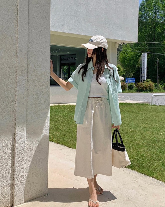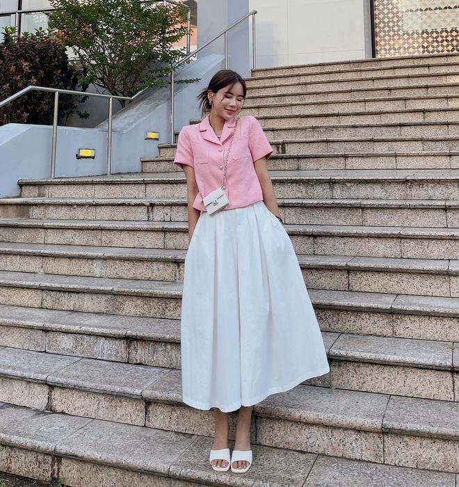 Chân váy chữ A có rất nhiều phiên bản. Để có được vẻ ngoài trẻ trung, bạn nên ưu tiên chân váy chữ A mang tông màu pastel hoặc xếp ly. Kiểu chân váy này không chỉ phù hợp để diện đến công sở, mà còn là mảnh ghép lý tưởng cho những set đồ đi dạo phố, du lịch…