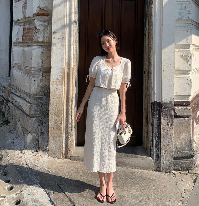 Chân váy trắng bất ngờ chiếm sóng street style của hội sành điệu trong mùa hè năm nay. Sự xuất hiện của mẫu chân váy này sẽ giúp set trang phục thêm tươi sáng, rạng rỡ, từ đó hack tuổi hiệu quả.