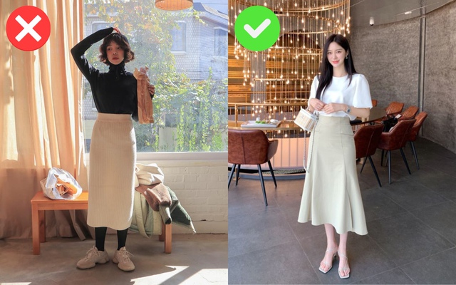 Item thứ 2 bị liệt kê trong danh sách nên tránh chính là chân váy ôm dáng dài. Phom dáng bó sát vào người sẽ làm lộ nhiều nhược điểm như eo bánh mì, vòng 3 nhỏ. Ngoài ra, kiểu váy này còn không phù hợp trong nhiều hoàn cảnh, đặc biệt là những chiếc váy làm từ chất liệu mỏng như lụa hay len. Thay vào đó, bạn nên ưu tiên những mẫu váy phom chữ A có độ rộng vừa phải.