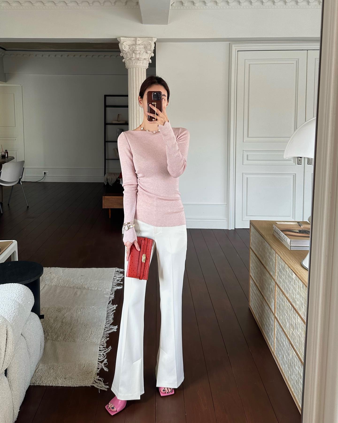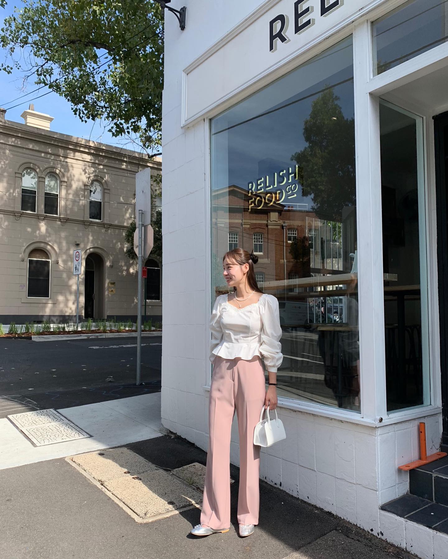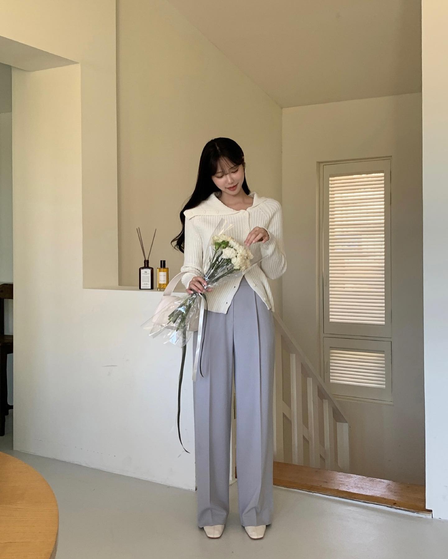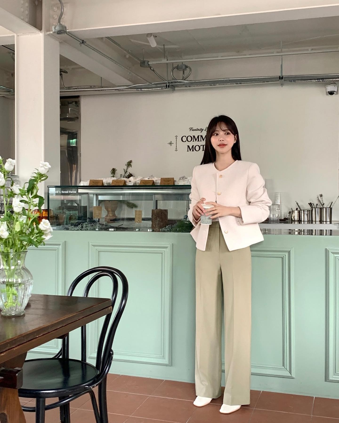 Quần âu màu pastel sẽ mang đến làn gió mới cho phong cách của phụ nữ ngoài 40 tuổi. Mẫu quần âu này ghi điểm ở sự ngọt ngào, trẻ trung, giúp cả bộ trang phục thêm nổi bật nhưng vẫn đảm bảo nét tinh tế. Quần âu màu pastel kết hợp rất ăn ý với áo trắng để tạo nên outfit tươi sáng, dịu dàng, đồng thời nhân đôi hiệu quả "hack" tuổi.