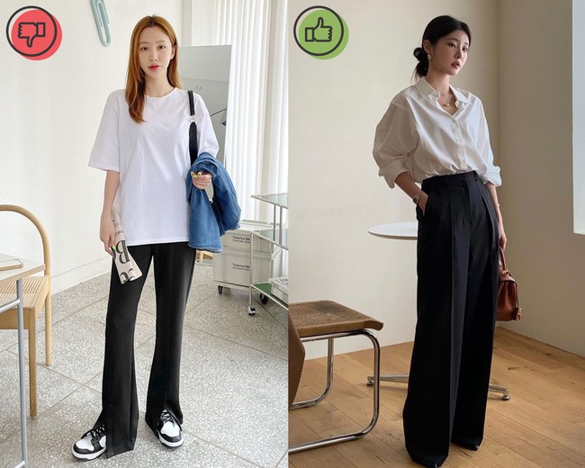 Thậm chí, nếu bạn chọn quần đen xẻ gấu quá dài, vóc dáng còn trở nên thấp hơn chứ không có sự thanh thoát, cao ráo. Quần âu màu đen, có đường ly giữa sẽ là lựa chọn lý tưởng hơn. Đây là phiên bản quần đen đang "phủ sóng" phong cách của các quý cô sành điệu. Quần âu màu đen, có đường ly giữa còn là "bảo chứng" cho vẻ ngoài thanh lịch, chỉn chu, giúp nâng tầm phong cách hiệu quả.