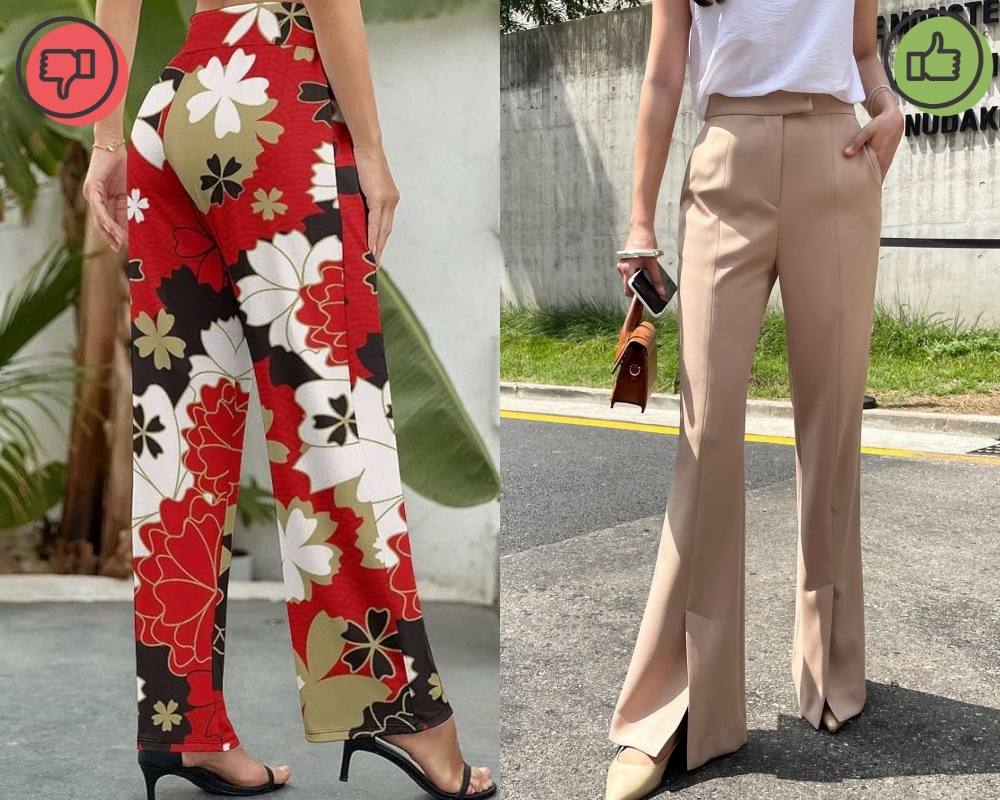 Quần với các họa tiết có thể rất bắt mắt, nhưng đôi khi chúng có thể quá nổi bật và không phù hợp cho công sở. Môi trường làm việc thường ưa chuộng sự trang nhã và chuyên nghiệp hơn là sự nổi bật. Nếu bạn muốn thể hiện phong cách cá nhân, hãy tập trung vào việc chọn áo hoặc phụ kiện để làm điểm nhấn, còn với quần, bạn nên chọn những item đơn giản và trung tính để tạo dáng vẻ chuyên nghiệp.