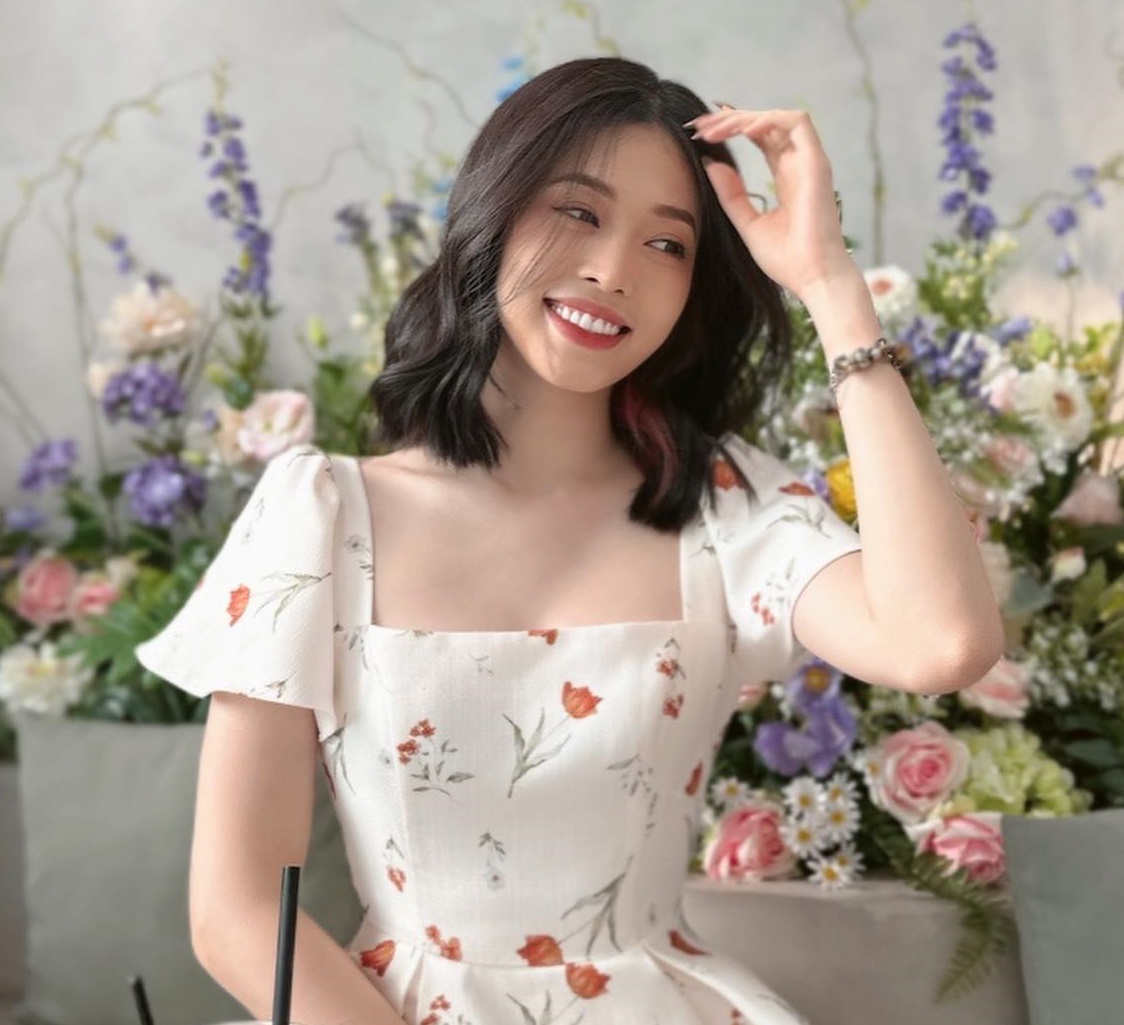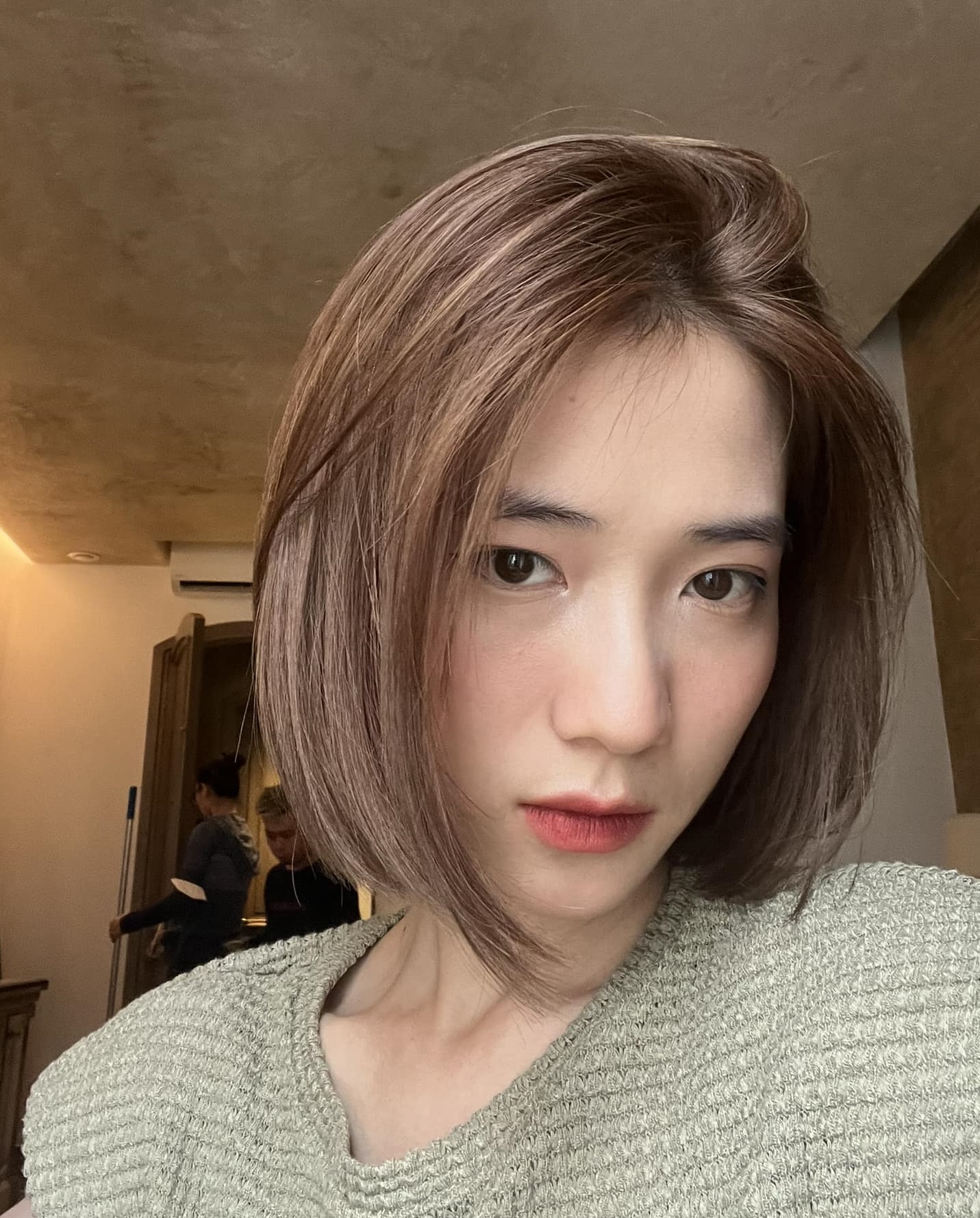 Hot mom Trâm Anh chọn màu nhuộm nâu hạt lanh cho mái tóc ngắn. Màu nhuộm này giúp diện mạo của Trâm Anh trở nên rạng rỡ và nổi bật. Bên cạnh đó, tông màu nâu hạt lanh vẫn đảm bảo sự trang nhã, tinh tế cho diện mạo. Với kiểu tóc ngắn, nhuộm sáng màu, chị em hãy chăm chút mái tóc bằng các sản phẩm như dầu gội và xả chuyên dụng, dầu dưỡng hoặc mặt nạ ủ. Như vậy, mái tóc sẽ có độ bóng mượt, khỏe khoắn.