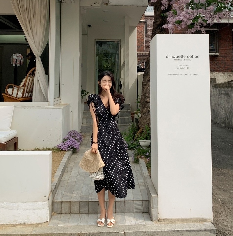 Váy cổ chữ V là món thời trang phổ biến trong mùa hè. Mẫu váy này ghi điểm ở sự phóng khoáng, trẻ trung nhưng cũng không kém phần thanh lịch. Chi tiết cổ chữ V còn mang đến hiệu quả "hack" dáng thon gọn, thanh thoát.