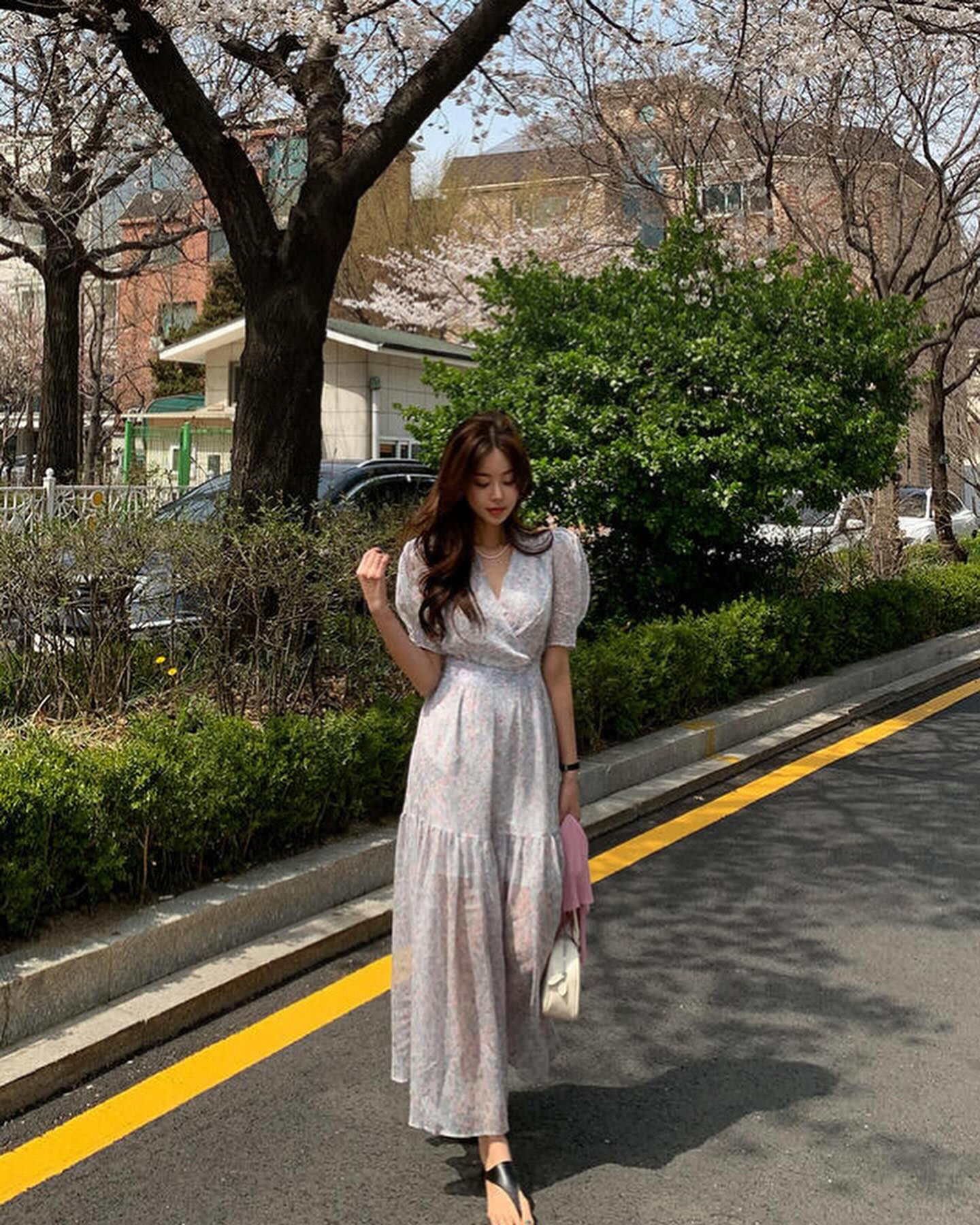 Bên cạnh những mẫu váy cổ chữ V đơn giản, mang tông màu trung tính, chị em đừng bỏ qua phiên bản họa tiết hoa. Thiết kế váy cổ chữ V, hoa nhí gây ấn tượng ở sự trẻ trung, ngọt ngào và còn ghi điểm trang nhã, tinh tế. Váy cổ chữ V giúp chị em mặc đẹp trong nhiều bối cảnh, chẳng hạn như đi làm, dạo phố cuối tuần hay đi du lịch.