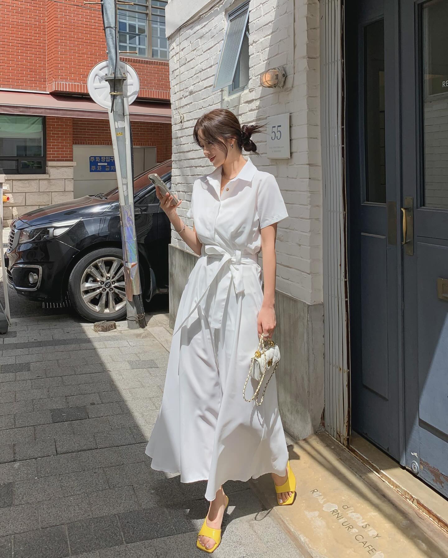 Chị em đừng bỏ qua xu hướng váy sơ mi khi hoàn thiện phong cách mùa hè. Mẫu váy này rất trẻ trung nhưng cũng không kém phần thanh lịch. Váy sơ mi thường có thiết kế thoải mái nên giúp che nhược điểm, từ đó vóc dáng trông mảnh mai hơn.