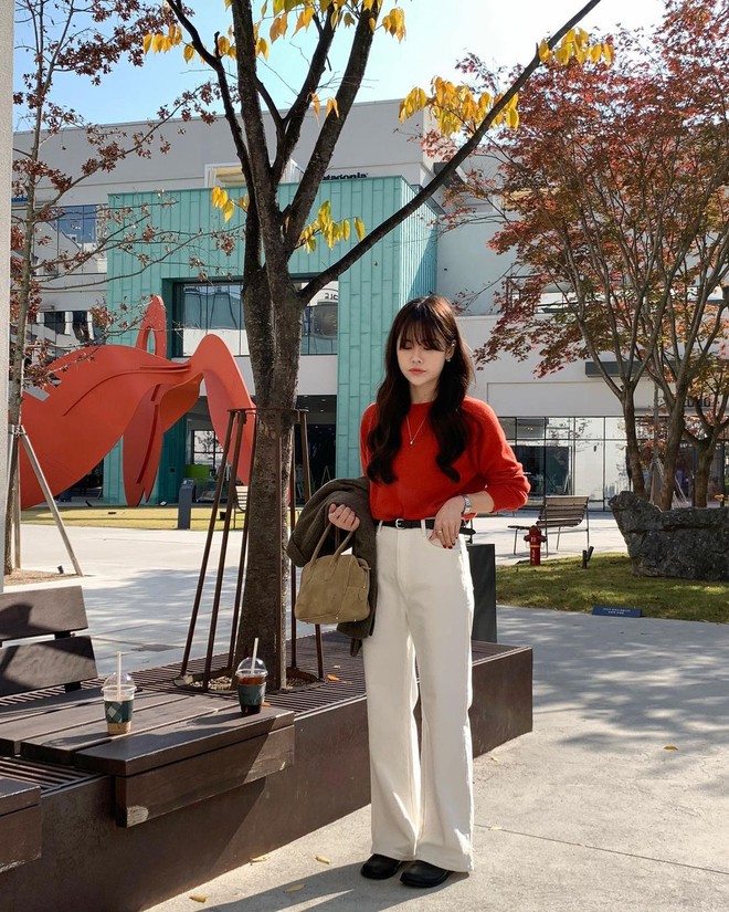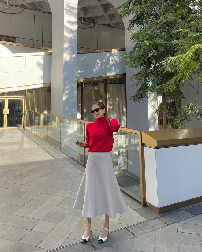 Khi diện đồ đỏ, hãy kết hợp nó với những item trơn màu để tạo sự cân đối và tránh sự chói mắt. Điều này là bởi tông màu đỏ vốn khá nổi bật, việc mix cùng những item trơn màu sẽ tạo sự cân đối cho tổng thể outfit. Bạn có thể chọn những chiếc áo đỏ đơn giản và phối chúng với quần, chân váy, hay quần jeans màu trắng, đen, xanh navy. Việc mix đồ đỏ với màu trơn sẽ giúp tạo nên sự tinh tế và không bị lạm dụng màu sắc gây rối mắt.