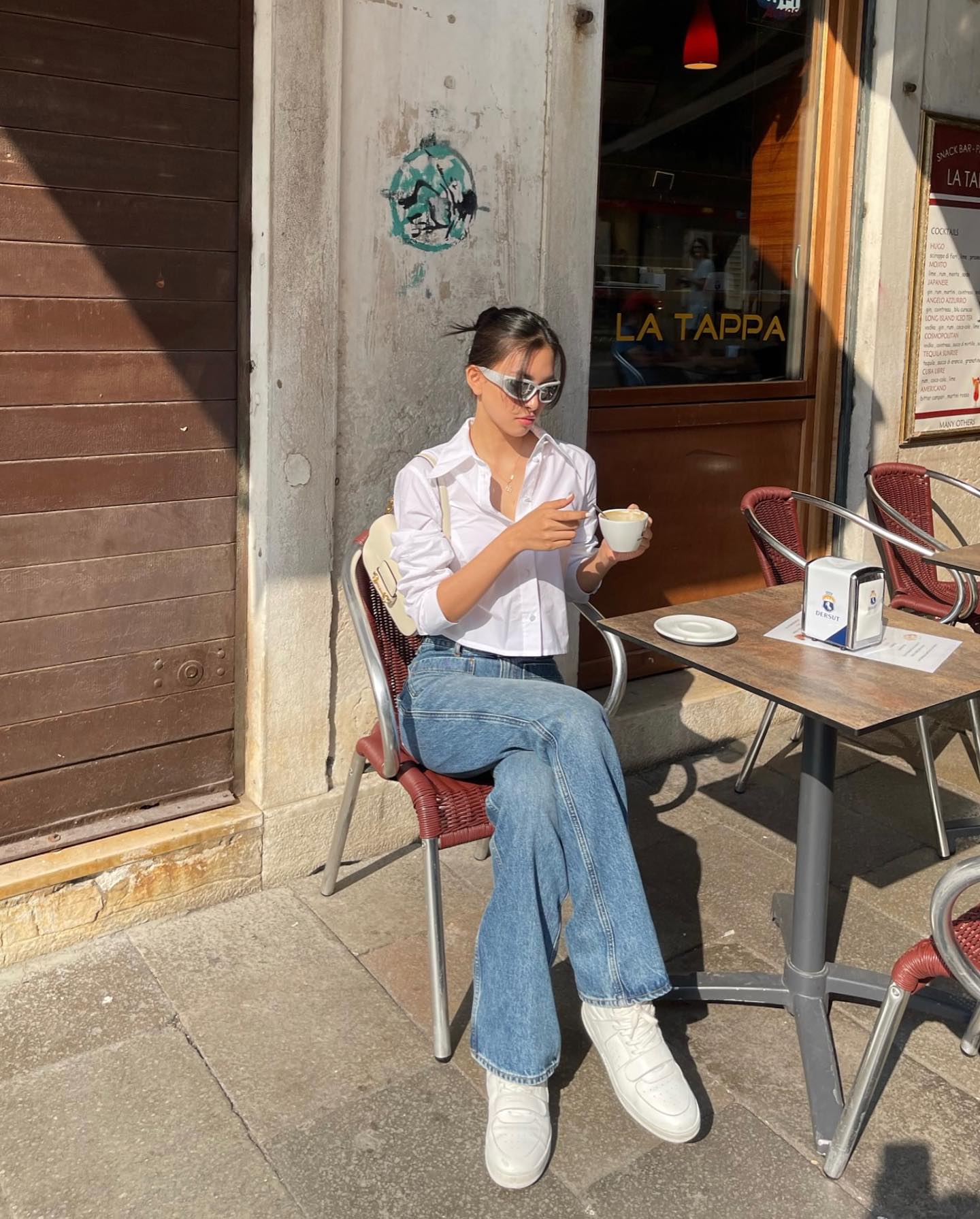 Với công thức sơ mi và quần jeans, chị em có thể sơ vin gọn gàng để nâng tầm vẻ thanh lịch, tinh tế và tôn dáng hiệu quả. Những mẫu giày thích hợp để phối với áo sơ mi và quần jeans bao gồm sneaker trắng, sandal hoặc giày cao gót mũi nhọn.