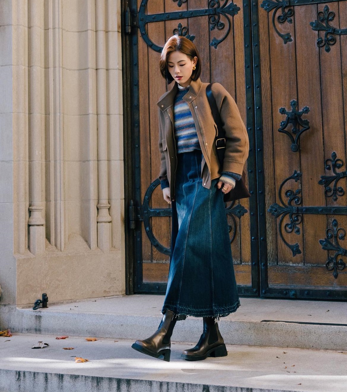 Ngoài ra, công thức áo khoác dạ ngắn và chân váy còn phù hợp với những nàng sở hữu chiều cao khiêm tốn vì giúp tôn dáng cao ráo, thanh thoát. Bên cạnh áo khoác dạ ngắn mang tông màu trung tính, các nàng hãy làm mới phong cách Tết này với phiên bản màu pastel hoặc màu sắc rực rỡ, nổi bật.