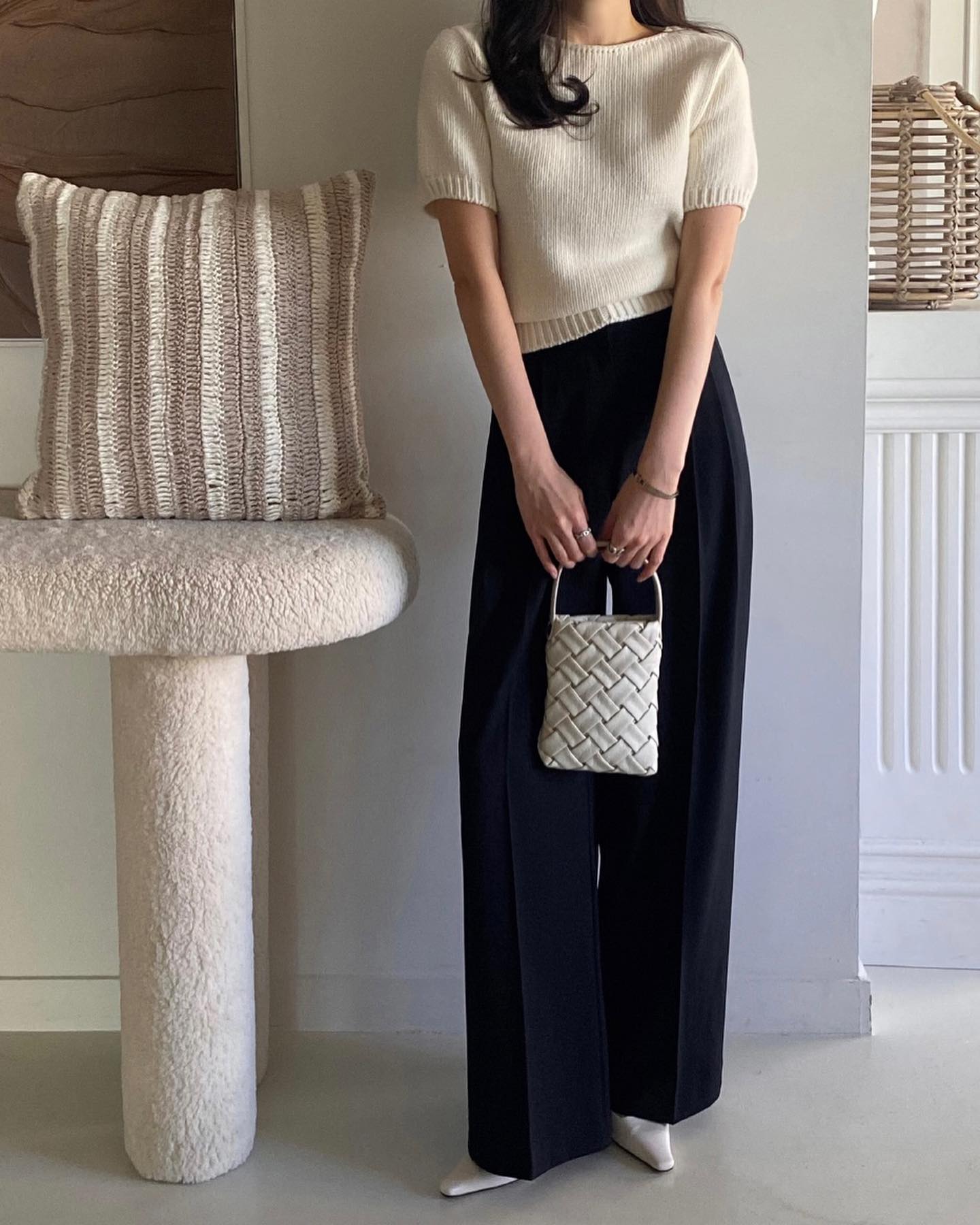 Muốn tạo điểm nhấn long lanh, sang xịn mịn cho set áo len cộc tay và quần đen, chị em hãy đeo vòng cổ ngọc trai, dây chuyền vàng hoặc khuyên tai. Các nàng đừng chỉ giới hạn phong cách với áo len cộc tay mang tông màu trung tính, những chiếc áo màu rực rỡ sẽ giúp vẻ ngoài thêm trẻ trung, nổi bật.