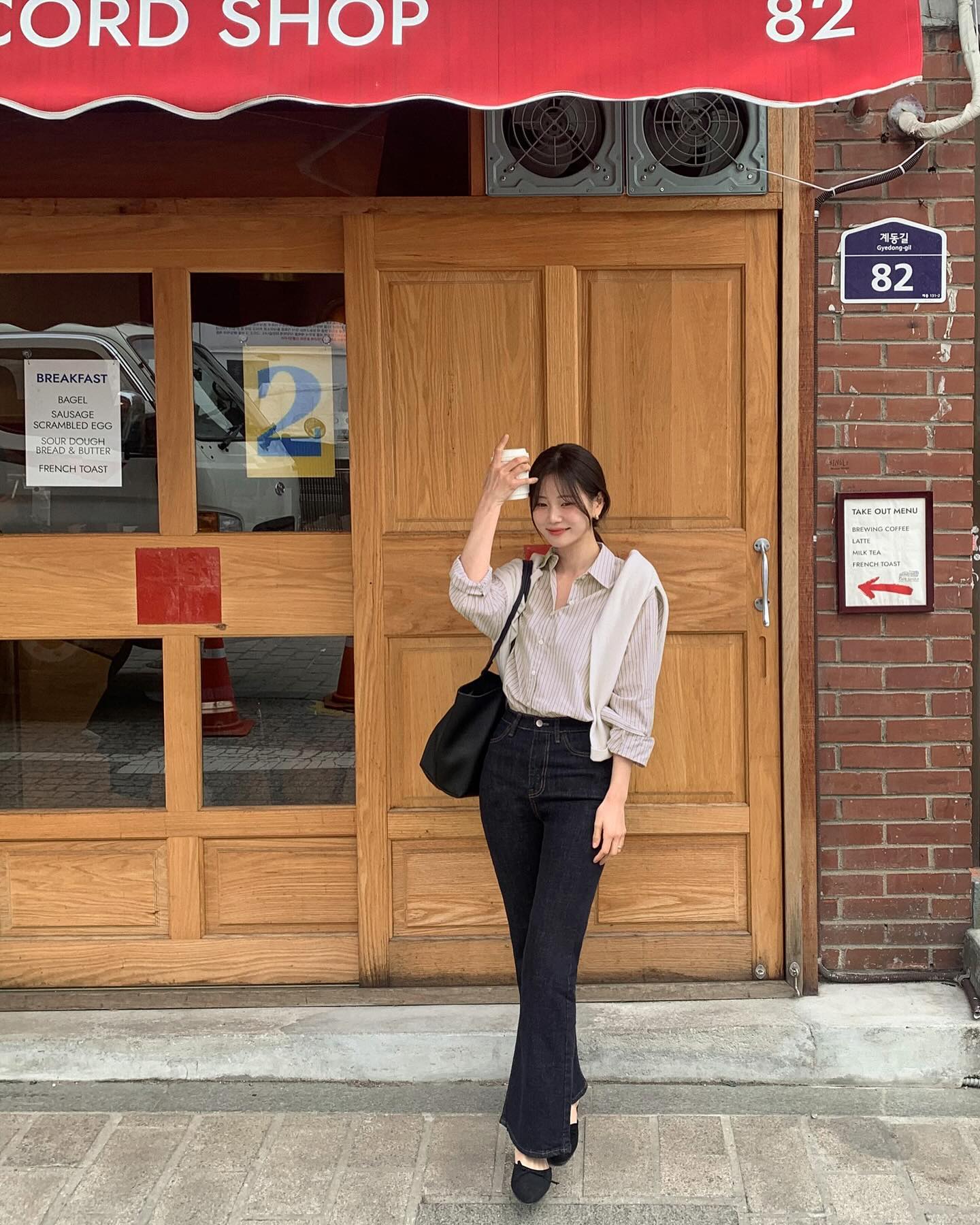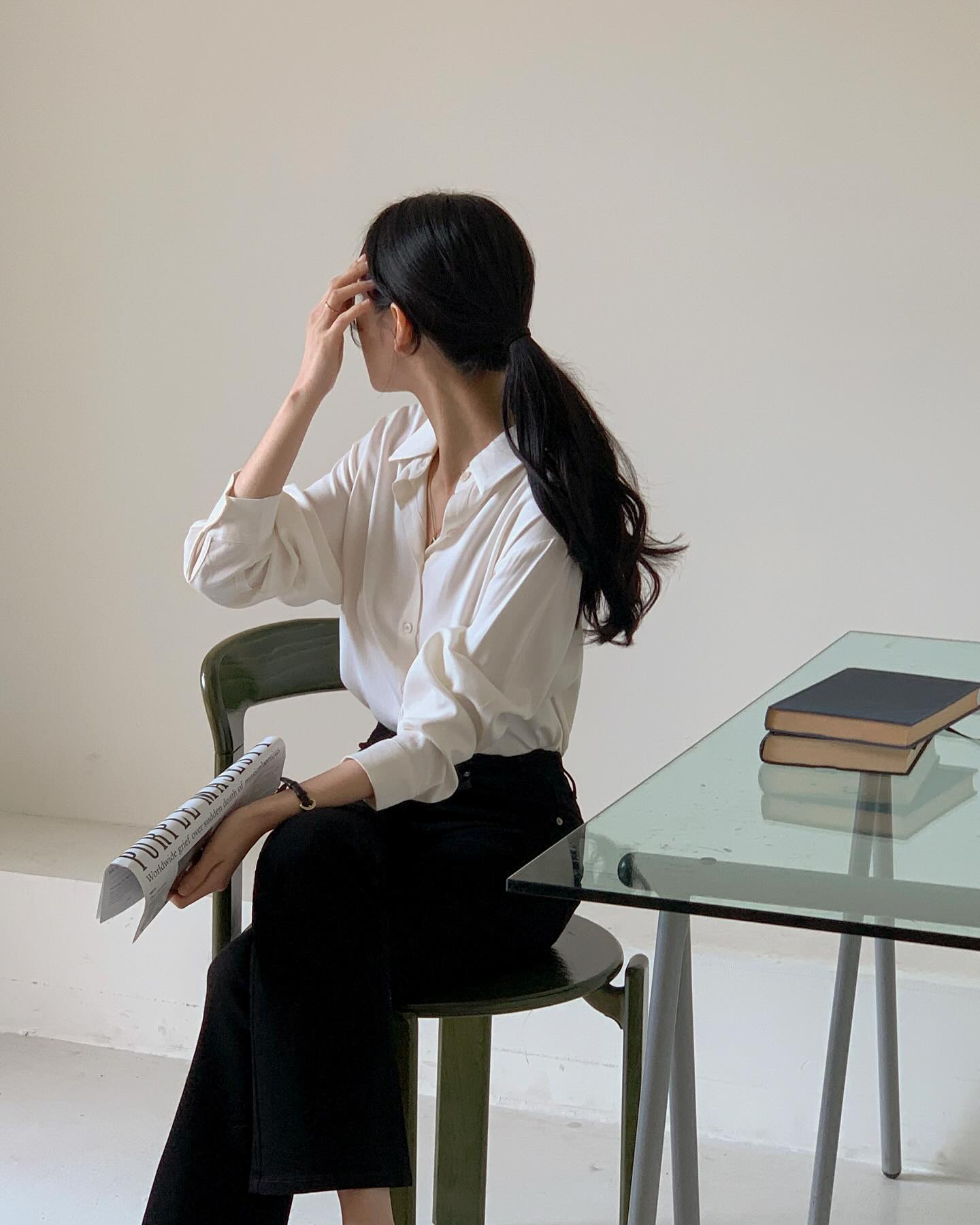 Muốn hoàn thiện vẻ ngoài đơn giản, trang nhã, các nàng nên kết hợp áo sơ mi màu trung tính với quần đen. Nổi bật hơn là công thức quần đen diện cùng áo sơ mi kẻ sọc, sơ mi màu pastel hoặc sơ mi màu đậm. Các nàng nên chọn quần đen ống đứng, quần ống loe và sơ vin gọn gàng để "ăn gian" chiều cao tối ưu.
