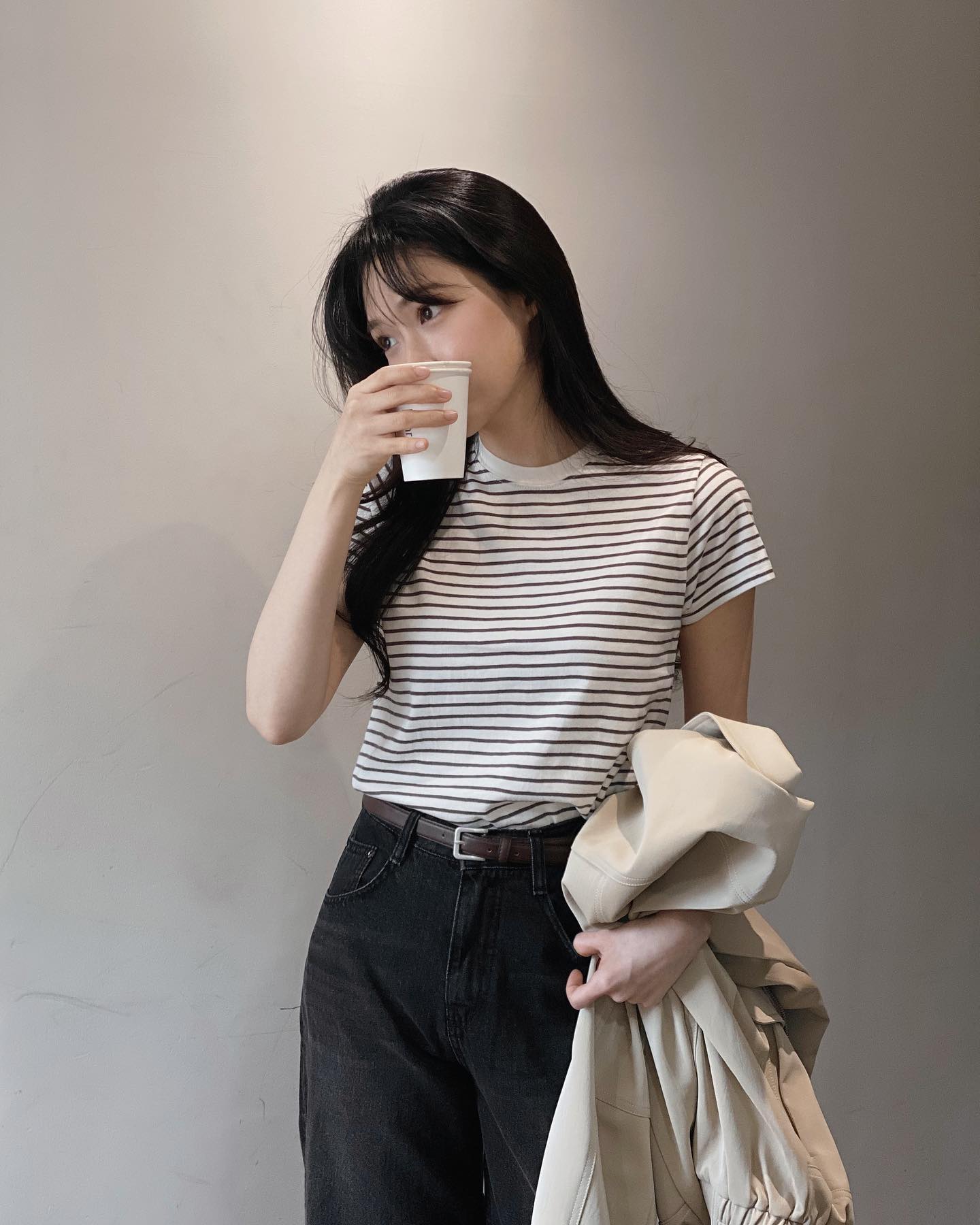 Áo kẻ ngang là món thời trang họa tiết luôn chuẩn mốt với thời gian. Sự kết hợp giữa áo kẻ ngang và quần âu mang đến cho người diện bộ trang phục nổi bật mà vẫn thanh lịch, hài hòa. Tổng thể outfit sẽ được nâng tầm khi chị em sơ vin và chọn các mẫu giày như giày loafer, sandal quai mảnh, giày búp bê tối giản. Áo kẻ ngang phối màu trung tính sẽ giúp chị em có vẻ ngoài trang nhã. Tuy nhiên, nếu muốn outfit thêm nổi bật, rạng rỡ, các nàng đừng bỏ qua áo kẻ ngang tông màu đỏ - trắng, xanh - trắng hoặc trắng và cam…