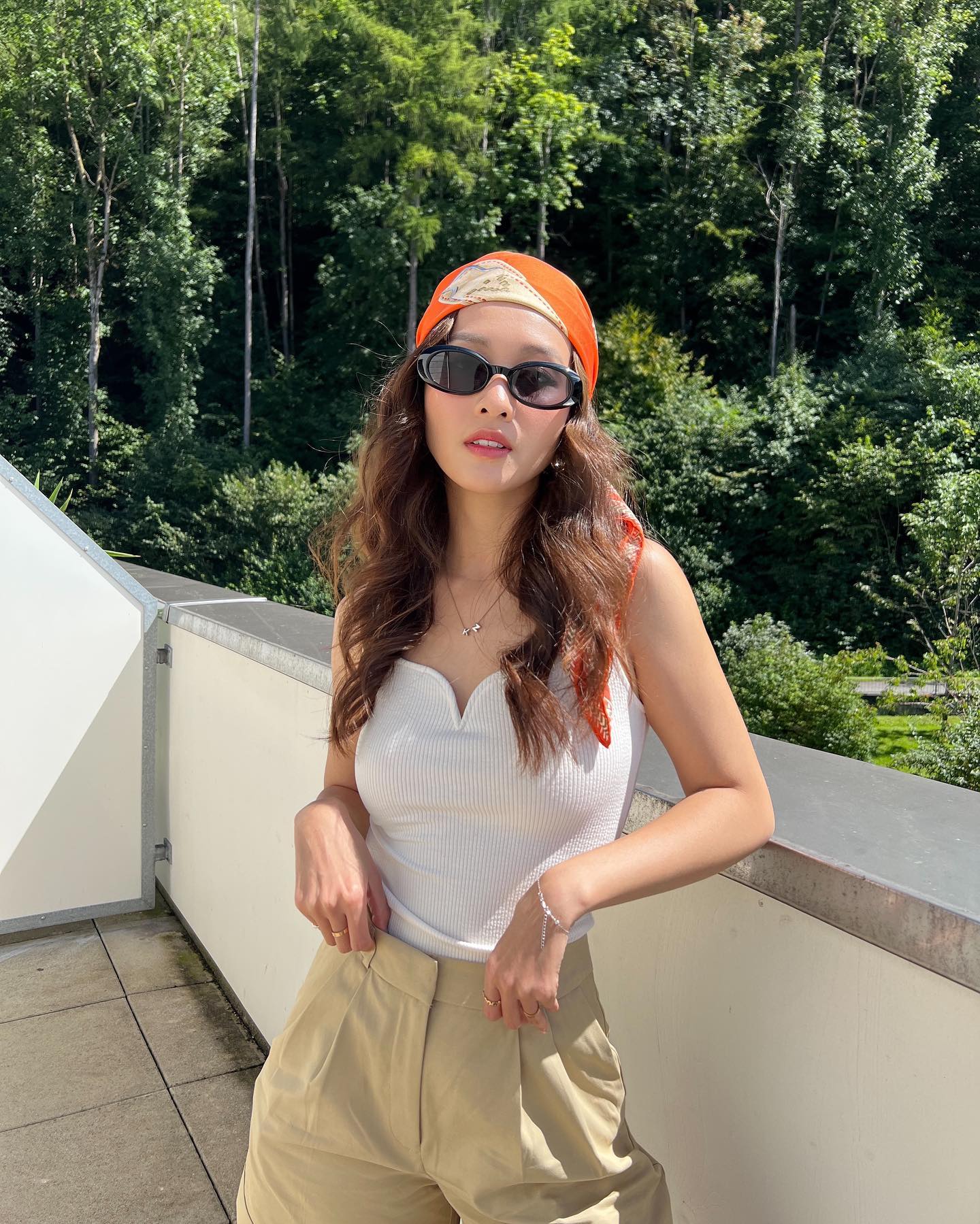 Khi diện áo hai dây trắng, các mỹ nhân Việt thường nhấn nhá dây chuyền vàng, vòng cổ ngọc trai hoặc một chiếc khăn họa tiết để tạo điểm nhấn nổi bật cho tổng thể trang phục.