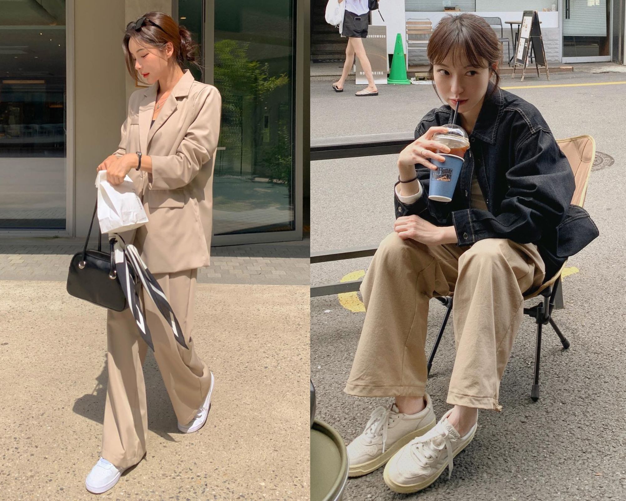 Giày sneaker tạo sự thoải mái và năng động cho người diện. Bên cạnh đó, mẫu giày này cũng rất sành điệu. Người làm thời trang thường ưu tiên mẫu giày sneaker mang tông màu trung tính, thiết kế đơn giản, như sneaker trắng là một ví dụ. Các mẫu giày sneaker tinh giản không chỉ "hack" tuổi tốt, mà còn đảm bảo vẻ tinh tế, thanh lịch cho bộ trang phục. Giày sneaker phù hợp với quần jeans và váy ngắn nhưng bên cạnh đó, mẫu giày này cũng kết hợp rất ăn ý với những kiểu trang phục thanh lịch, đậm chất công sở như quần âu hay bộ suit.