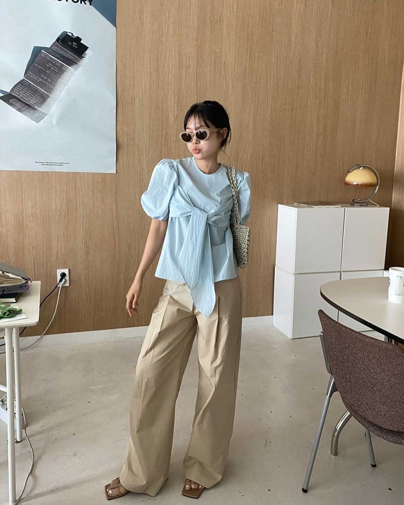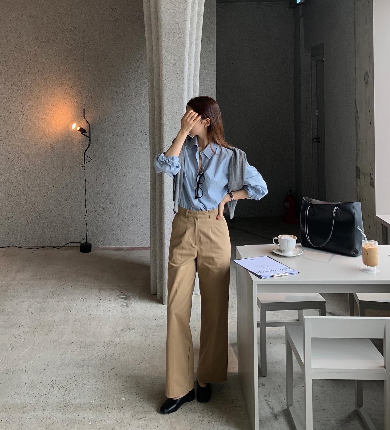 Khi lên đồ tới công sở, chị em vẫn có lựa chọn nhẹ mát để mặc trong những ngày nắng nóng, đó là quần âu sáng màu. Trang phục tông màu sáng sẽ không hấp thụ nhiệt như nhưng item màu đen, từ đó tạo cảm giác dễ chịu, mát mẻ hơn. Đây cũng chính là lý do, chị em nên ưu tiên quần âu sáng màu thay vì chọn quần âu tông màu đen hay nâu trong mùa hè. Quần âu sáng màu mang đến công dụng "hack" tuổi nhưng vẫn đảm bảo vẻ ngoài trang nhã, tinh tế cho nàng công sở.