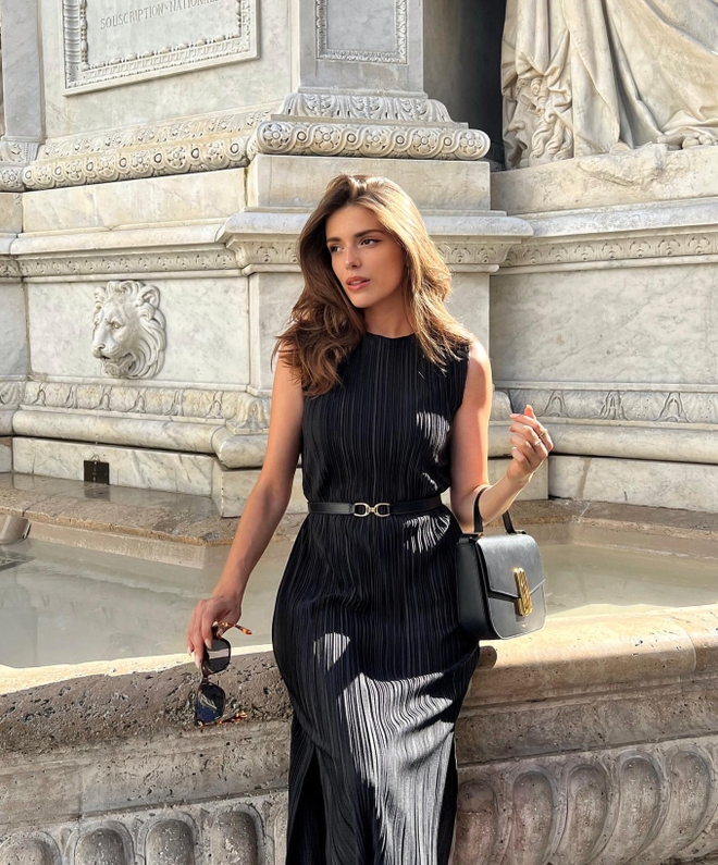 Vào mùa hè, các mẫu váy màu sắc tươi sáng thường được ưu tiên nhiều hơn. Tuy nhiên, chị em cũng đừng bỏ qua váy đen khi hoàn thiện phong cách. Váy đen đơn giản nhưng vẫn giúp vẻ ngoài trở nên nổi bật với nét tinh tế, sang trọng. Ngoài ra, váy đen còn mang đến hiệu quả thu gọn vóc dáng.