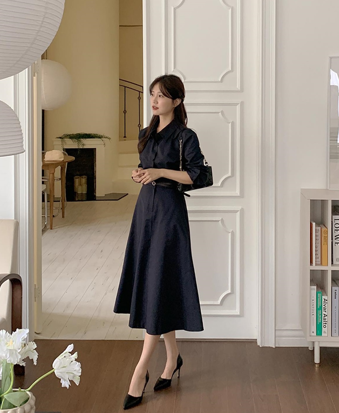 Các mẫu váy đứng dáng như váy sơ mi, váy nhấn eo là lựa chọn lý tưởng nhất để hoàn thiện phong cách công sở thanh lịch, chuyên nghiệp. Để giữ nguyên điểm tinh tế của những set váy công sở, các nàng hãy chọn các mẫu giày sang trọng như giày cao gót mũi nhọn, sandal cao gót quai mảnh hoặc giày búp bê tối giản.